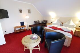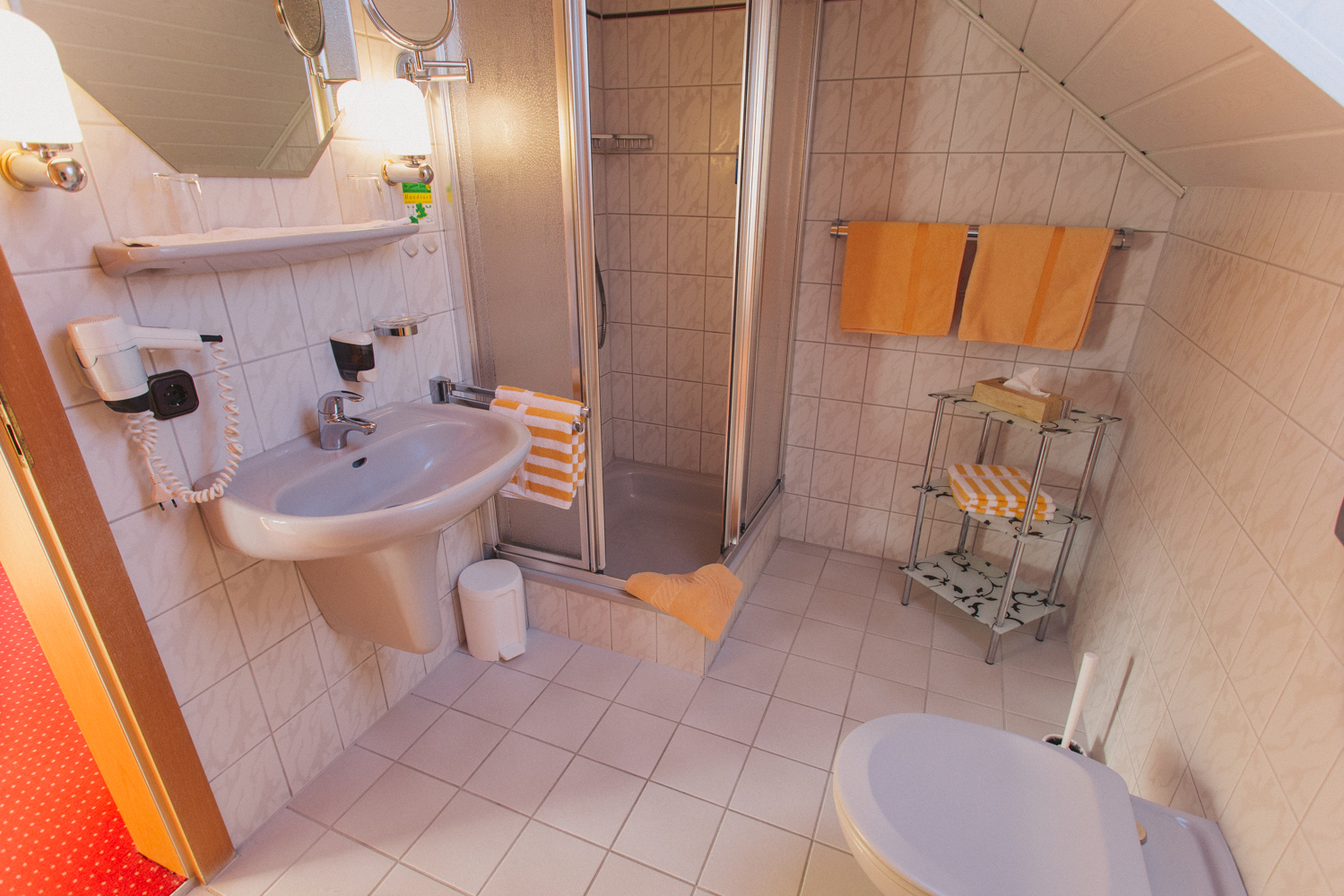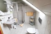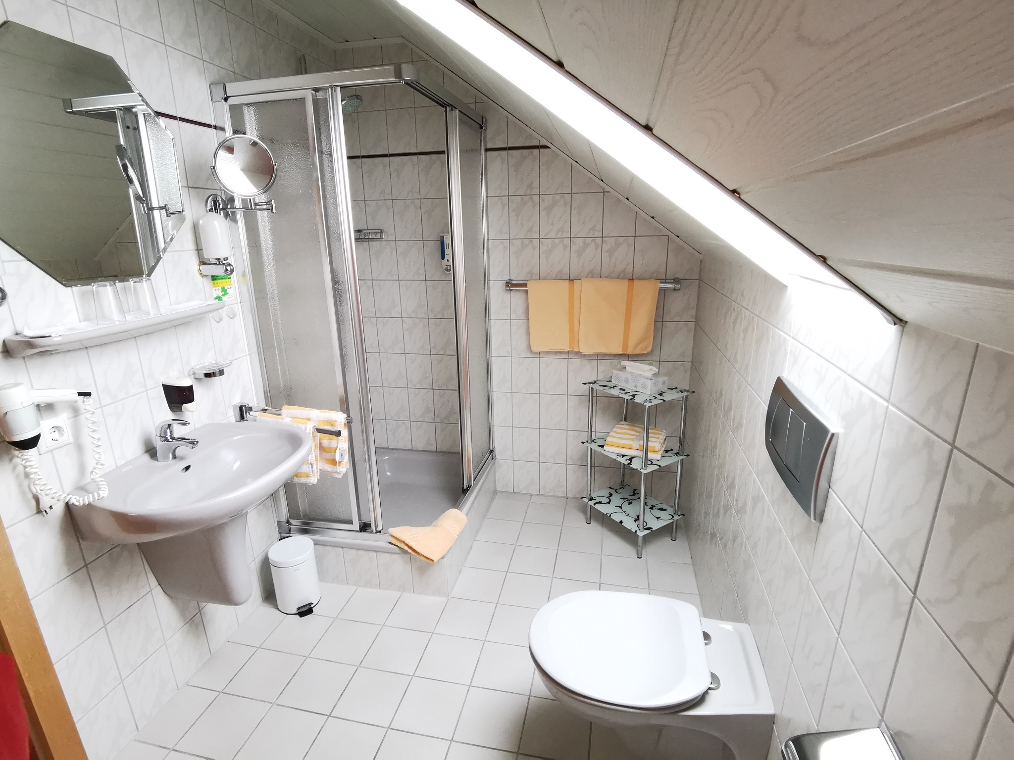 Das Doppelzimmer ist komfortabel eingerichtet. Doppelbett und zusätzliches Einzelbett, Sitzgruppe, TV, WLAN. Der möblierte Balkon bietet eine herrliche Fernsicht und Blick zur Donau. Das Badezimmer mit Dachfenster ist mit Dusche, WC, Fön und Handtüchern ausgestattet.