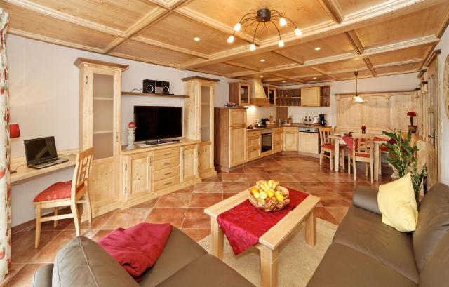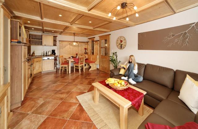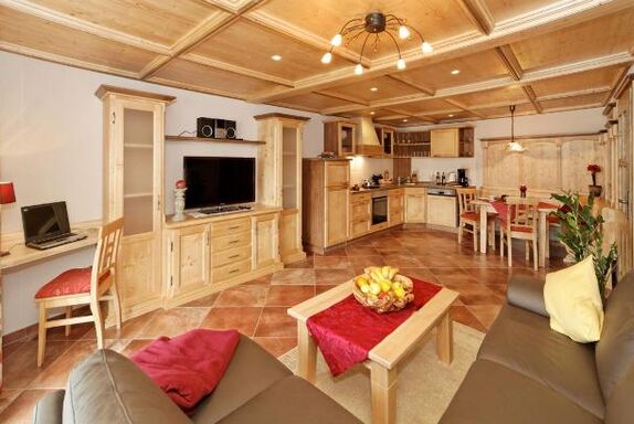 Ferienwohnung für maximal 5 Personen auf einem voll bewirtschafteten Bauernhof mit Streichelzoo. Es gibt die Möglichkeit kostenlos zu reiten und Reitunterricht zu nehmen. Außerdem sind auf dem Bauernhof eine Spielscheune und ein Aufenthaltsraum vorhanden. Die Wohnküche ist ausgestattet mit einer großen Couch, Fernseher, einer Essecke, sowie eine Küchenzeile mit einem Backofen und einem Geschirrspüler. Es gibt 2 Schlafräume mit jeweils einem Doppelbett (in einem ist zusätzlich ein kleiner Tisch und ein Fernseher vorhanden). Das Bad verfügt über Dusche, WC und zwei Waschbecken. Fön, Waschmaschine und Trockner sind ebenfalls vorhanden. Die Wohnung besitzt Zugang zu einem Balkon und einer Liegewiese mit Grillmöglichkeit. Bettwäsche, Handtücher, Parkplatz und Babyausstattung sind im Preis enthalten.