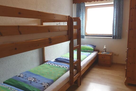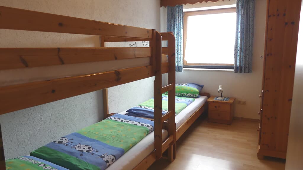 Gemütliche, ebenerdige Ferienwohnung mit 2 Schlafzimmern, Wohnküche, Dusche. Im Kinderzimmer Etagenbett und Einzelbett.