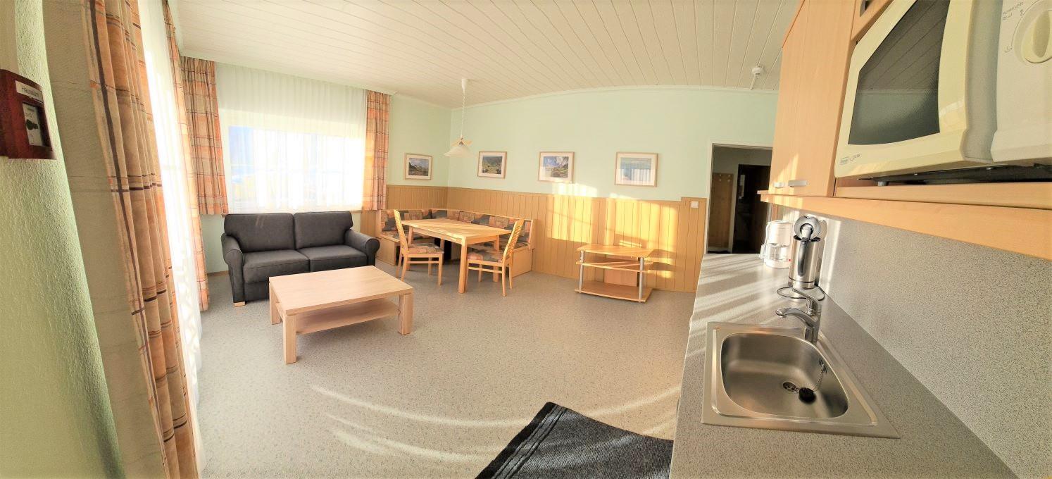 Blumen-Appartement ca. 55 m2, komplett eingerichtet, 2 2-bettige Schlafzimmer, gemütlicher Wohnraum mit Küche, Dusche und WC getrennt, Balkon