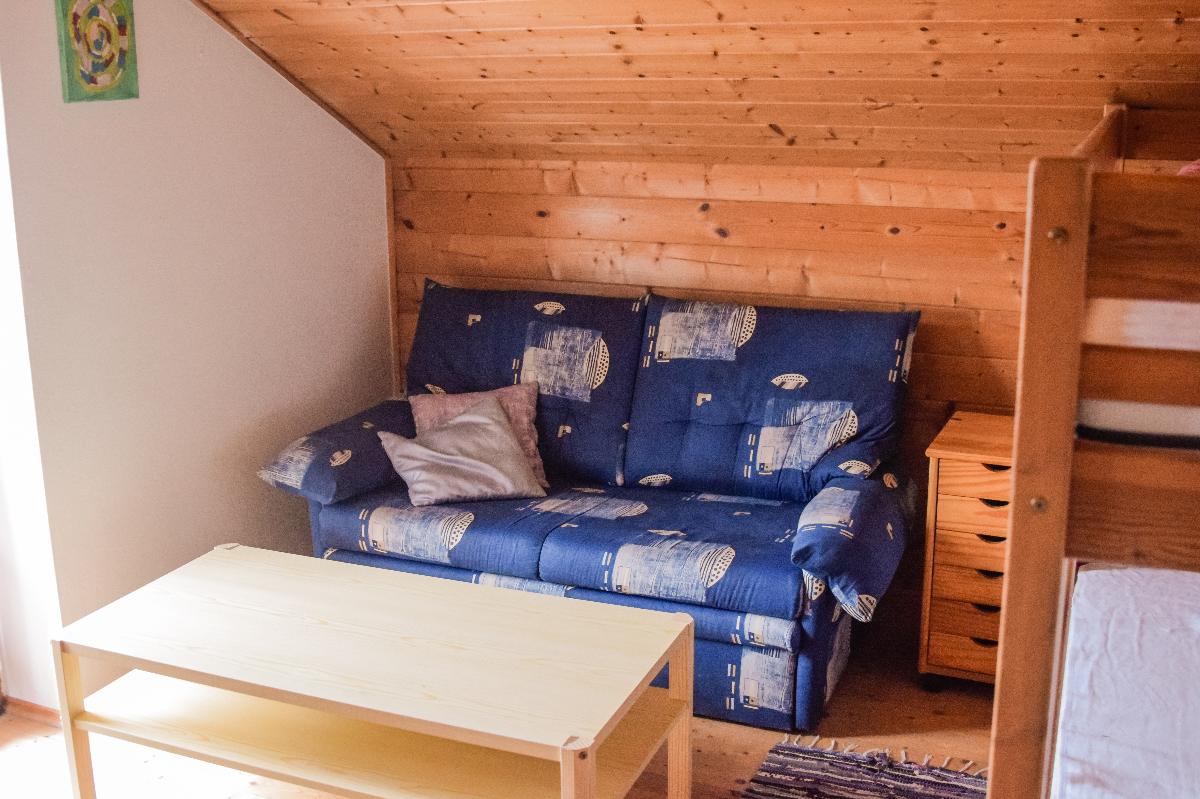 Schönes, geräumiges und gemütliches Ferienhaus mit 2 Schlafzimmern im EG (1 x mit Doppelbett, 1 x mit 2 Einzelbetten) und Schlafzimmer im OG (Doppelbett), Schlafgalerie (mit Hochbett), Babybett zustellbar, Wohnküche mit komplett eingerichteter Küchenzeile, Essplatz, Couchgarnitur, TV, Kaminofen, 2 Bäder, Flur, eigene Terrasse (mit Sitzgruppe).