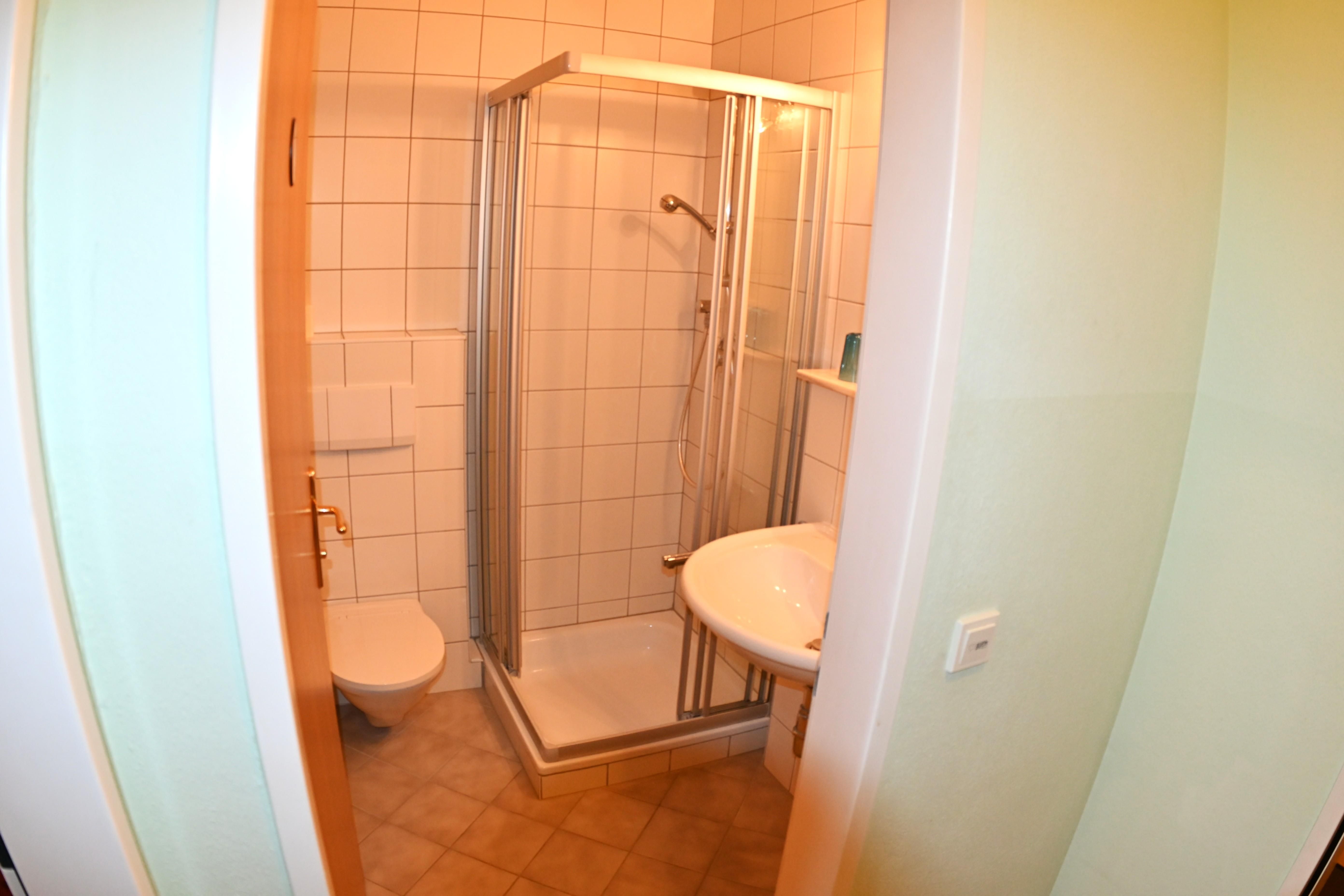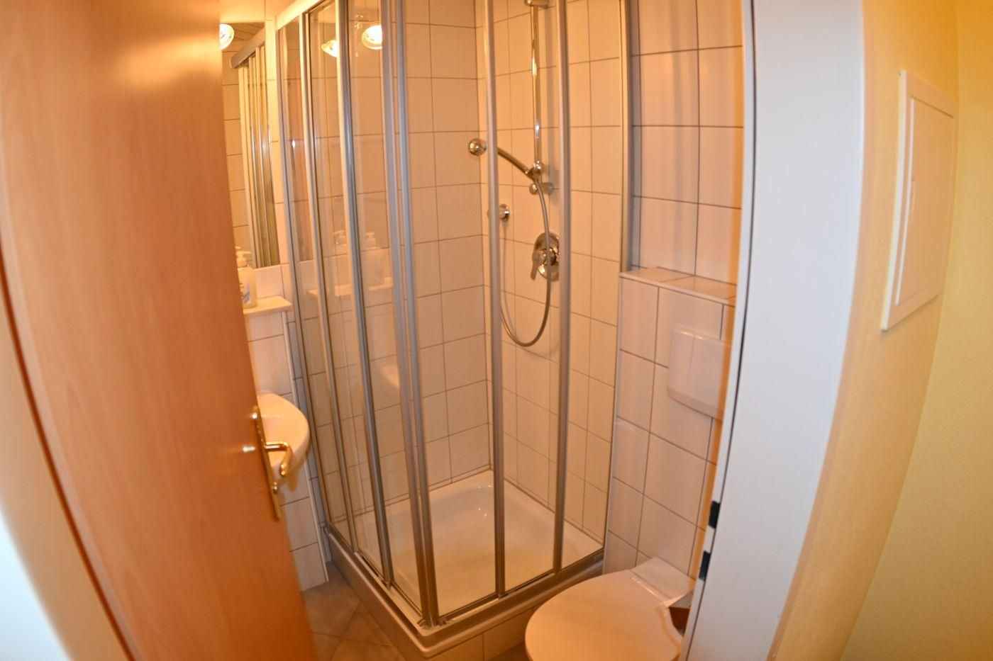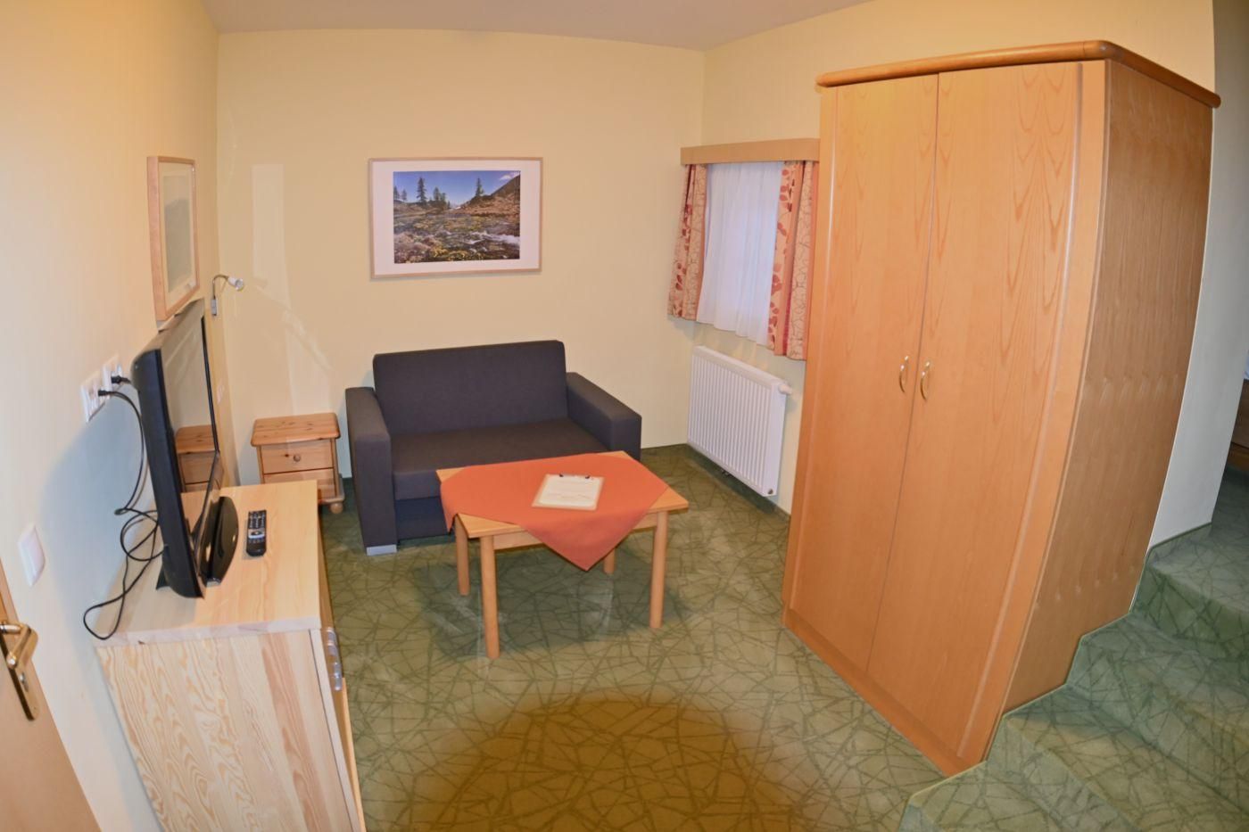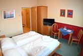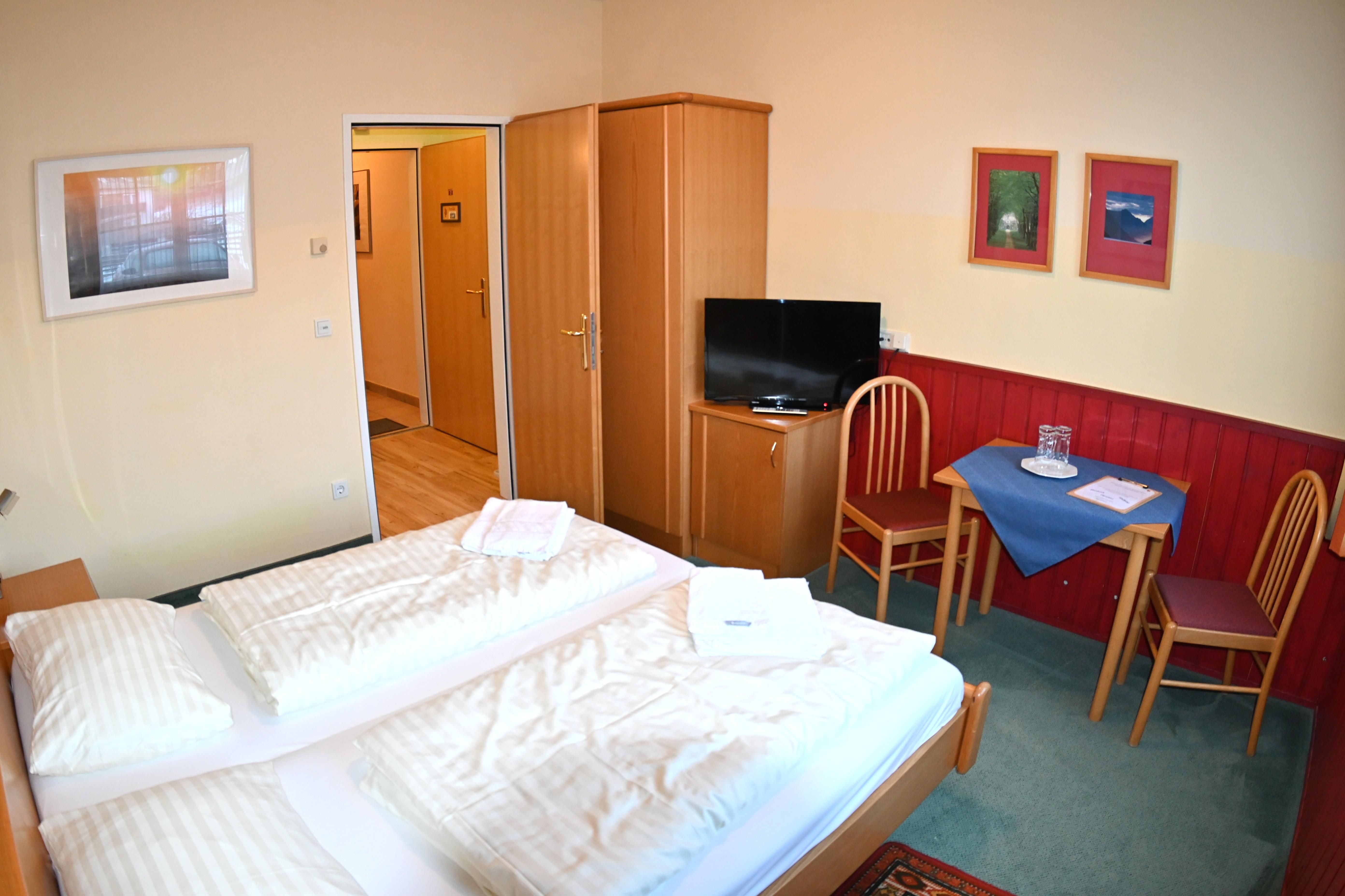 Hell eingerichtete Zimmer, 16 bis 20 m2, Dusche, WC, TV, Radio. Ideal zum Kombinieren mit den Appartements.