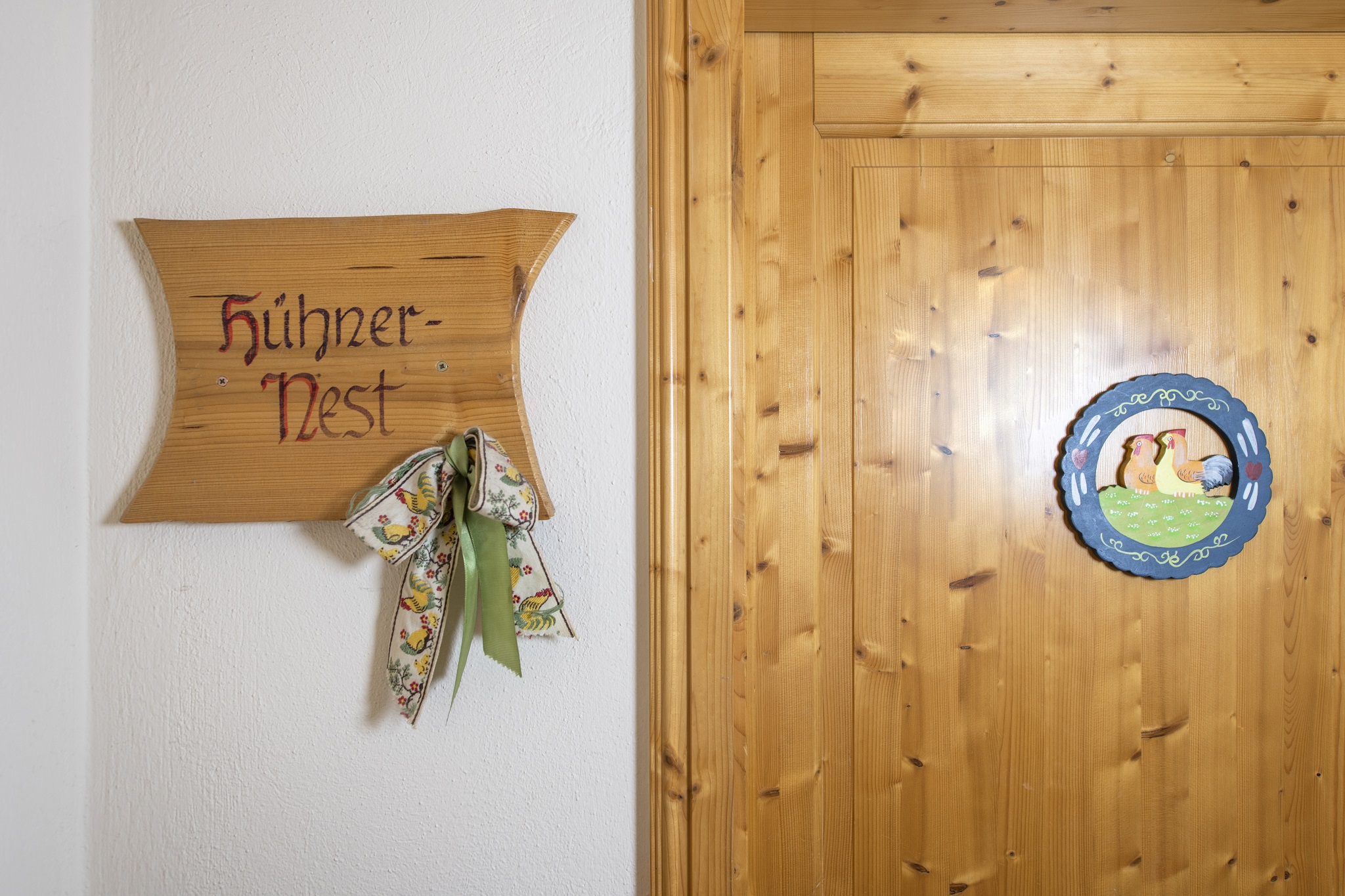 Die Wohnung Hühnernest befindet sich in unserem Gästehaus inmitten unseres schönen Dreiseithofes. Neben einem Eltern- und Kinderschlafzimmer enthält die Wohnung einen Flur, ein Bad und eine Küche mit Wohnbereich.