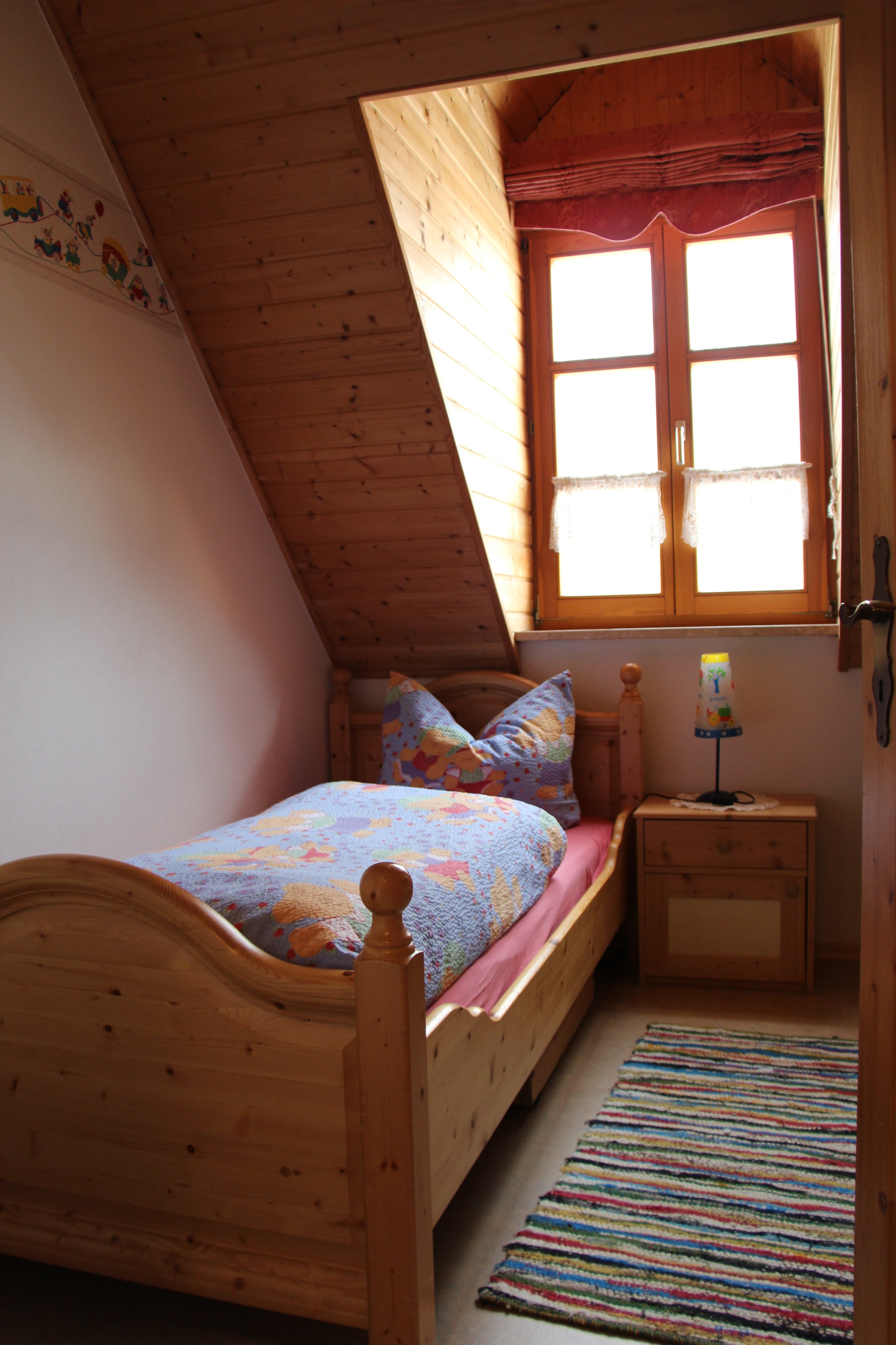 Sie ist im bäuerlichen Stil mit Fichte-Vollholzmöbel eingerichtet und strahlt eine gemütliche Atmosphäre aus. Auch für unsere kleinen Gäste ist vom Kinderwagen über den Flaschenwärmer bis hin zum Wickeltisch alles vorhanden.