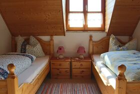 3 Ferien­wohnungen, eingerichtet im bäuerlichen Stil, stehen Ihnen zur Verfügung. Platz für größere Gruppen (große Küche, Aufenthaltsraum), Familientreffen, Jugendfreizeiten. Eigener Spielplatz, Liegewiese, große Go-Karts, Tischtennisplatte,