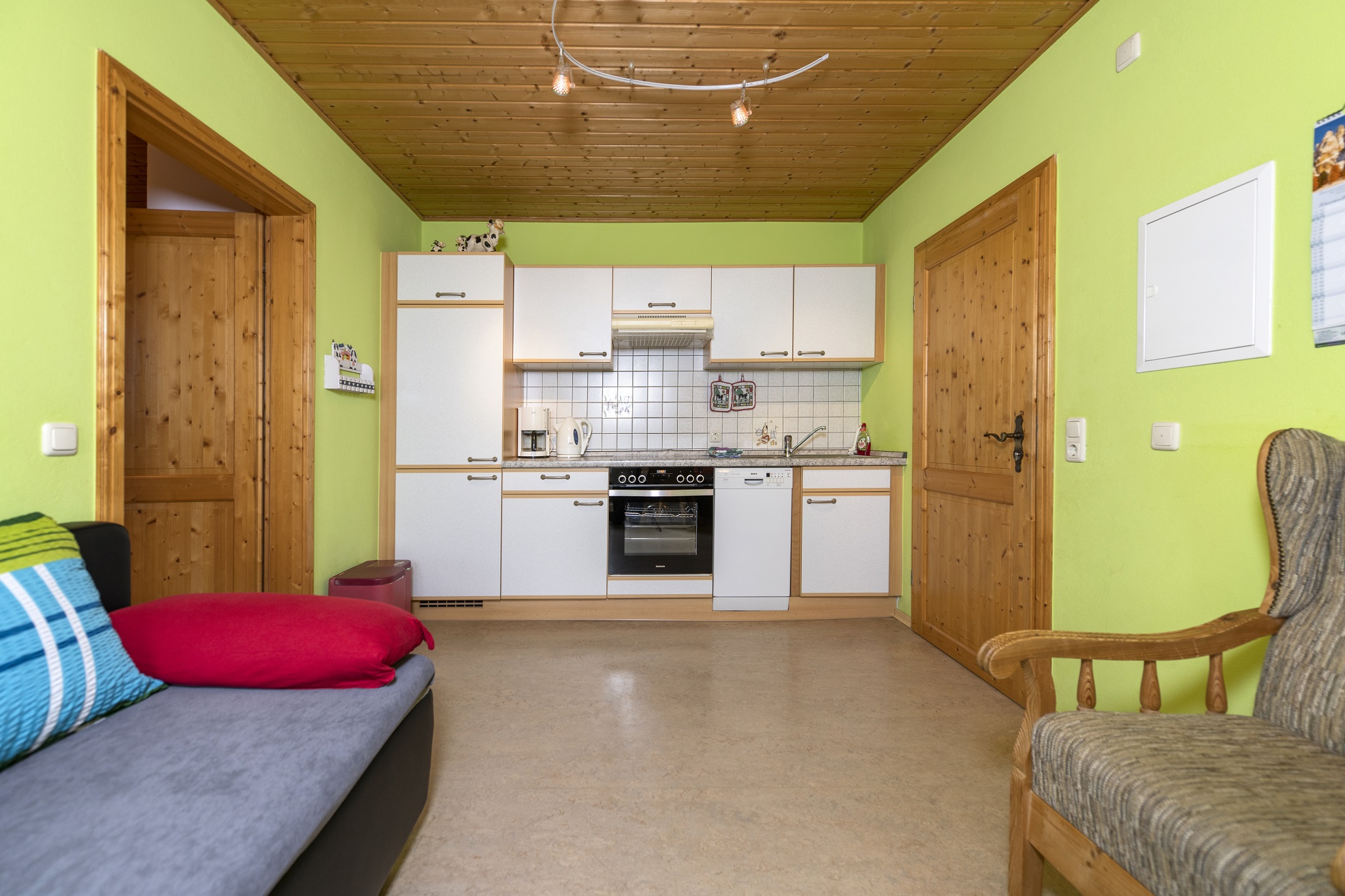 Neben einem Eltern- und Kinderschlafzimmer enthält die Wohnung einen Flur, ein Bad und eine Küche mit Wohnbereich. Sie ist im bäuerlichen Stil mit Fichte-Vollholzmöbel eingerichtet und strahlt eine gemütliche Atmosphäre aus. Auch für unsere kleinen Gäste ist vom Kinderwagen über den Flaschenwärmer bis hin zum Wickeltisch alles vorhanden.