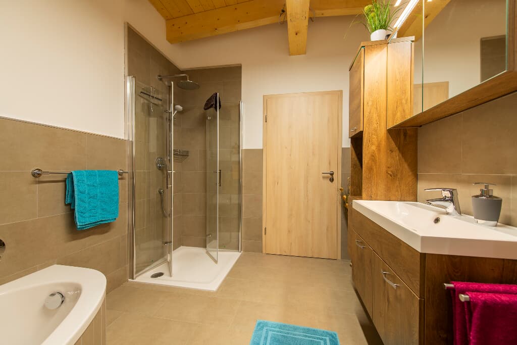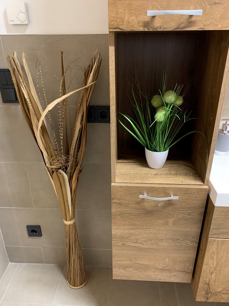 Eine wohltuende Erfrischung genießen Sie bei einem Shower in der begehbaren Dusche unter dem Panel, unterlegt mit Musik oder ein besinnliches Bad in der Badewanne, für gutes Aussehen der Fön…