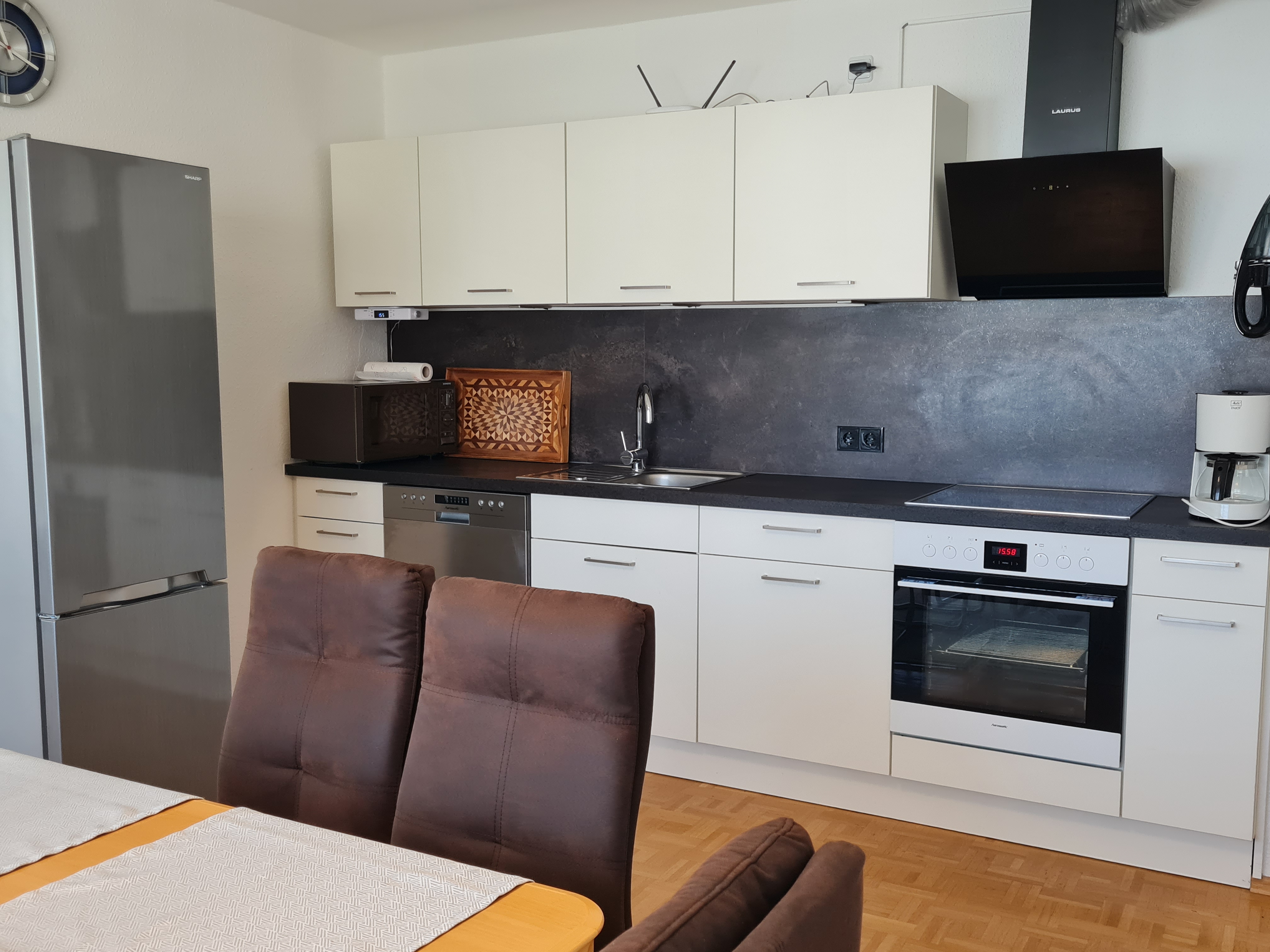 Die Wohnung umfasst 3 Zimmer, Küche, Bad, Garderobe, insgesamt 100 m². Sie ist ausgestattet mit Sat-TV, Radio, einer Auswahl von Büchern und Gesellschaftsspielen. Sie umfasst ein großes Schlafzimmer mit 2 Betten (zusätzliches TV-Gerät) und 2 Betten in dem sehr geräumigen Wohnzimmer. Die Küche ist ausgestattet mit Geschirrspüler, Kühl- und Gefrierschrank, Mikrowelle, Kaffeemaschine, Eierkocher, Wasserkocher und allen Küchenutensilien. Das Badezimmer ist komplett neu eingerichtet (inkl. Dusche, WC, Spiegelschrank und Fön). Zur Wohnung gehören 2 möblierte Balkone (Osten und Westen, dieser mit Blick zur Befreiungshalle). Ein überdachter Pavillon mit Sitzmöbeln kann auch als Grillplatz verwendet werden. Unseren Garten können Sie auch als Liegewiese nutzen.
