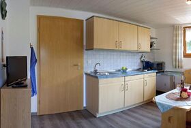 Auf 38 m² umfasst die Ferienwohnung ein gemütliches Wohnzimmer mit DVD- und CD-Player, eine Küchenzeile mit Ofen, Back-Mikrowelle und Kühlschrank. Kleine elektrische Helfer wie Kaffeemaschine, Wasserkocher, Toaster, Eierkocher und selbstverständlich ausreichend Geschirr, Besteck usw. sind vorhanden. Im separaten Schlafzimmer befinden sich Doppelbett, Schrank und Nachttische.