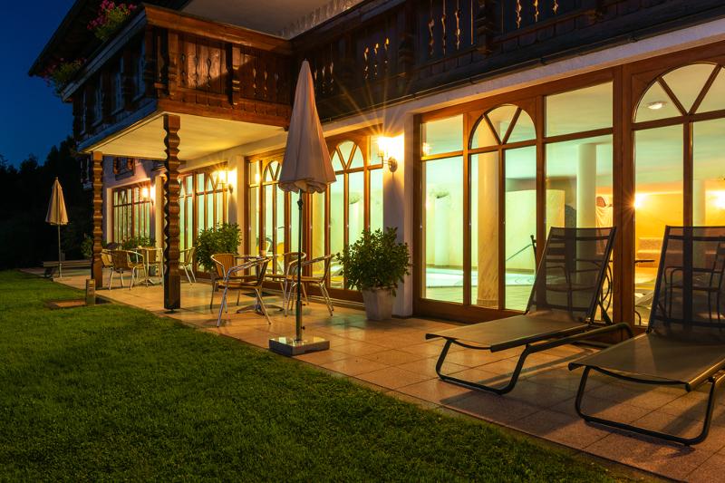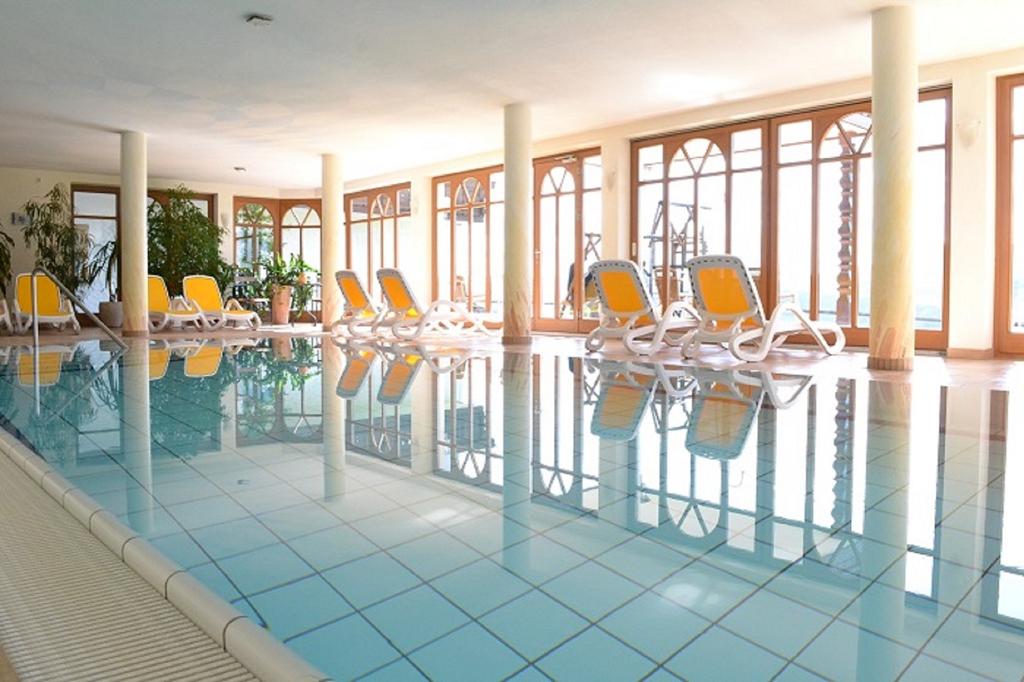 Entpannen Sie im großzügigen Hallenbad mit Liegewiese und lassen Sie