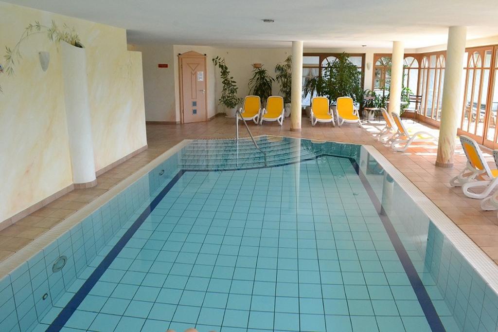 Entpannen Sie im großzügigen Hallenbad mit Liegewiese und lassen Sie