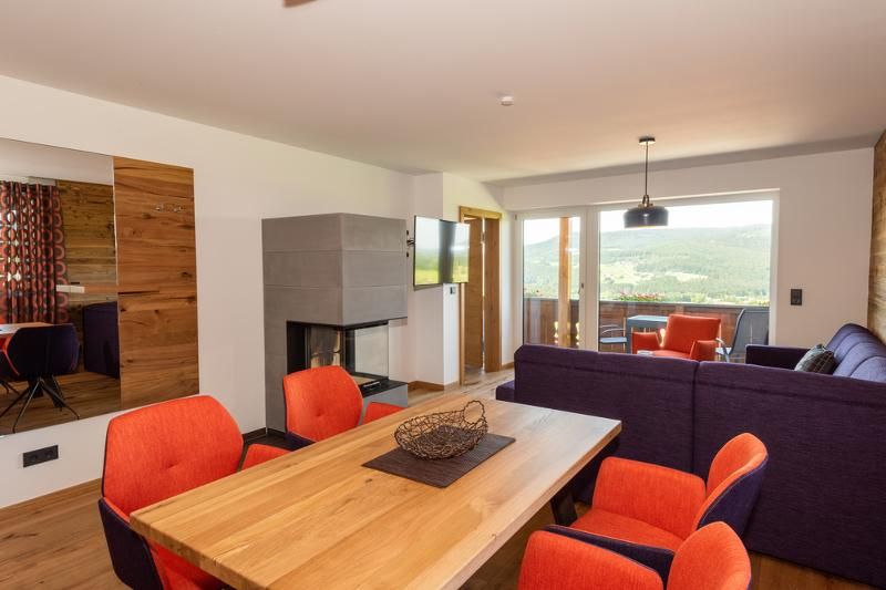 In unseren neuen Luxuswohnungen, im Chaletstil, sind mit einer Sauna und Whirlwanne ausgestattet. An kalten Tagen können Sie am Kaminfeuer entspannen.