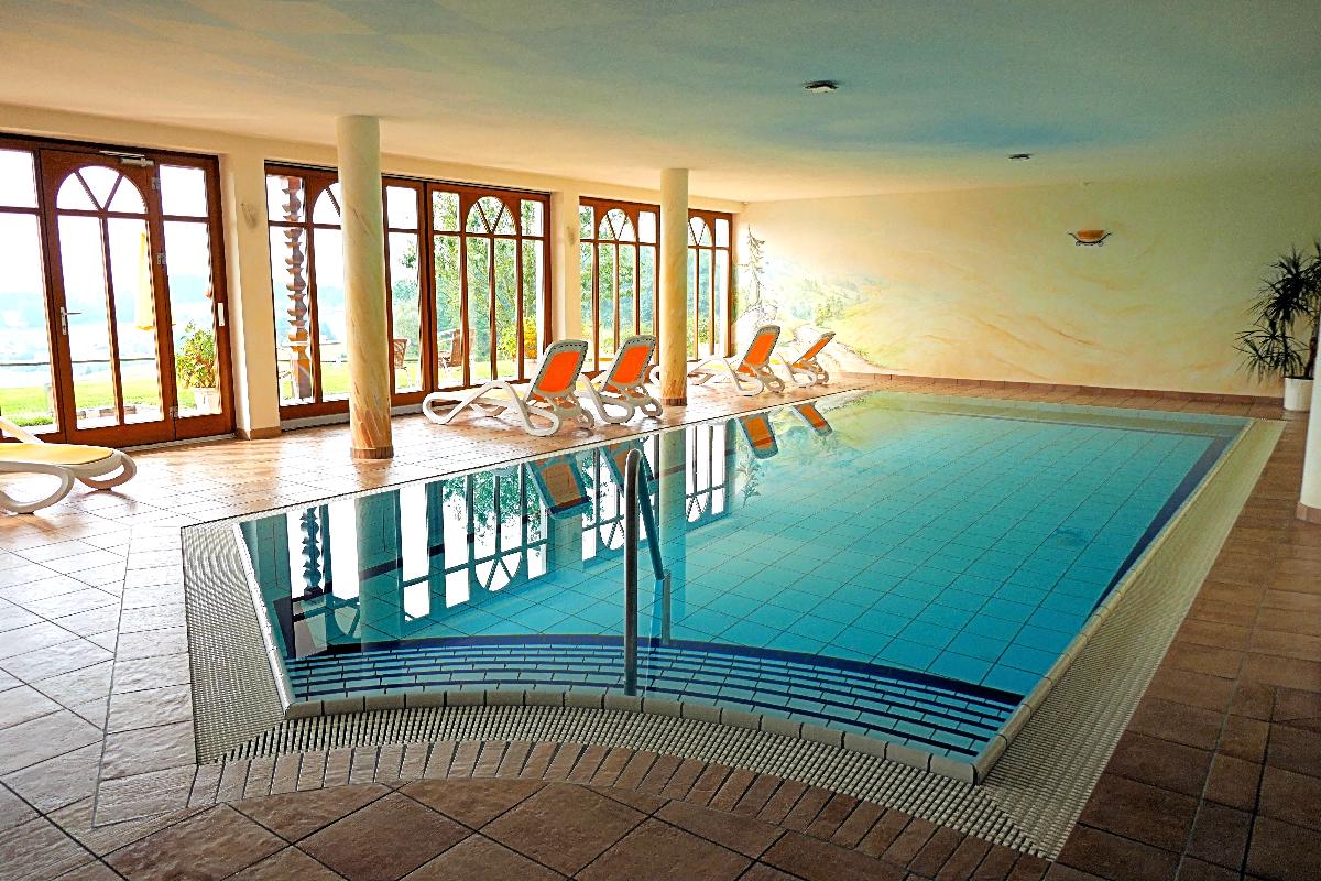 Entpannen Sie im großzügigen Hallenbad mit Liegewiese und lassen Sie