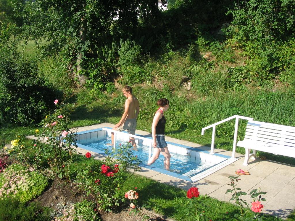 Gemütliche Ferienwohnung für 2-6 Pers. (85 qm) mit Erker und Sonnenterrasse. Vollausgestattete Küche, Wohnzimmer, 2 Schlafzimmer, Dusche/WC. W-Lan-Anschluss, TV. Direkter Zugang zum Hallenbad.