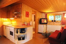 FeWo Rißloch 1. OG 33 qm: Ein Schlafraum mit Doppelbett, ein Wohnraum mit Küchenzeile (Spülmaschine, Mikrowelle, Gefrierschrank). Zustellbett möglich. SAT-TV , Dusche/WC, Hand-Dusch-Geschirrtücher ausreichend vorhanden. Überdachter Balkon mit Bestuhlung und Auflagen, kostenloser WLAN Zugang.