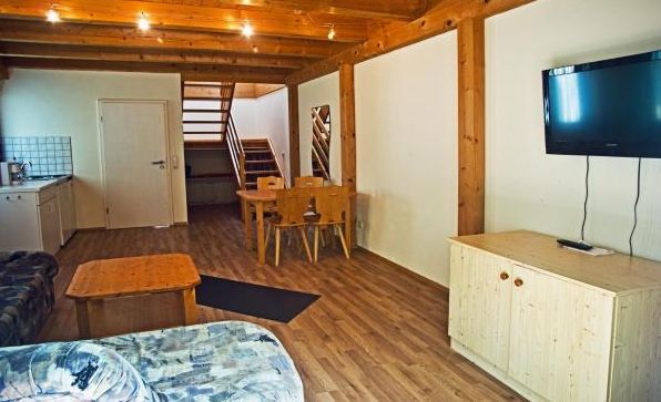 Schöne Häuser mit Dusche und WC, gut ausgestattete Küchenzeile, Schlafzimmer mit Doppelbett, Kinderschlafzimmer mit Stockbett/Doppelbett, Terasse mit Tisch und Stühle, Parkplätze vor den Häusern, Abenteuerspielplatz und WLAN.
