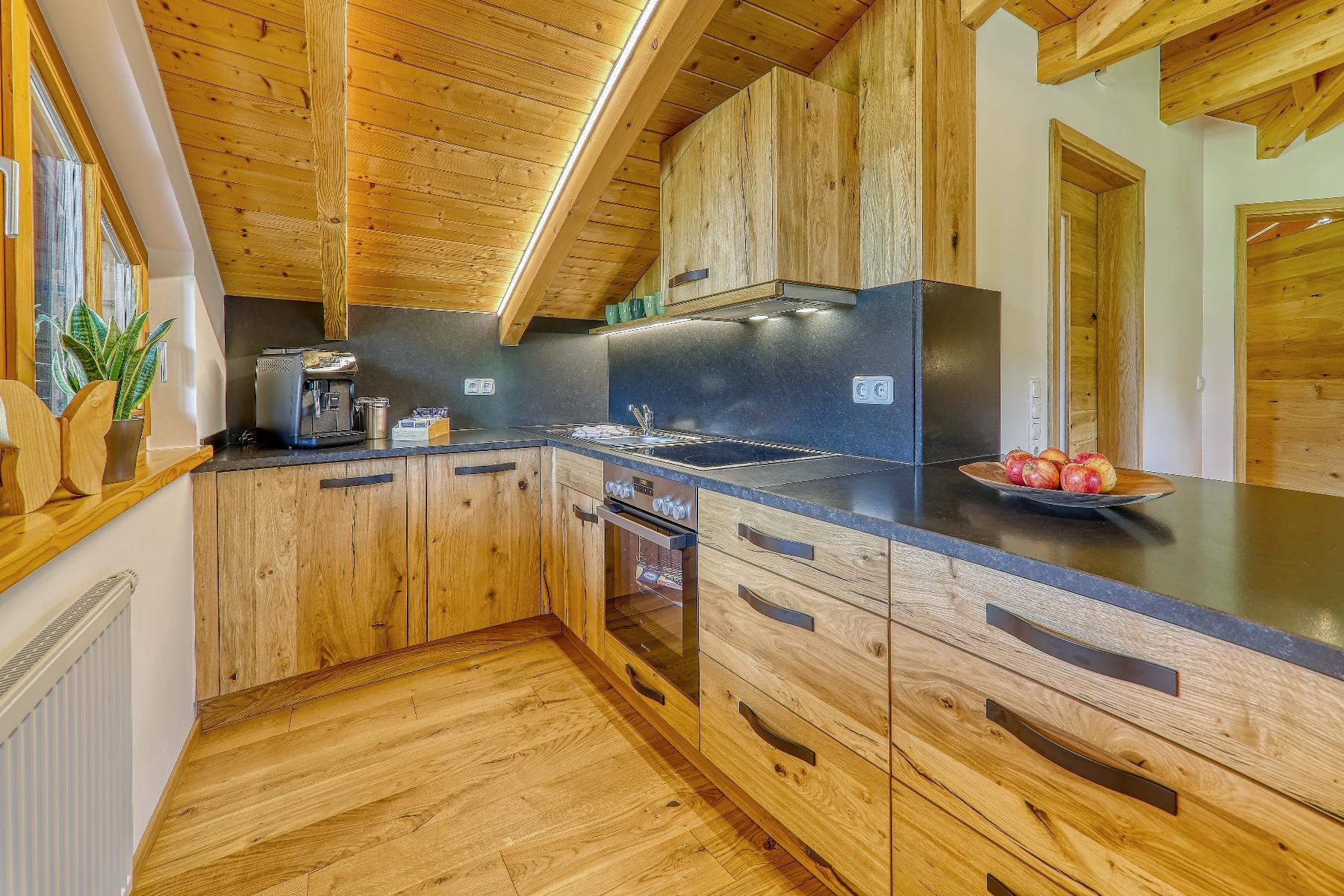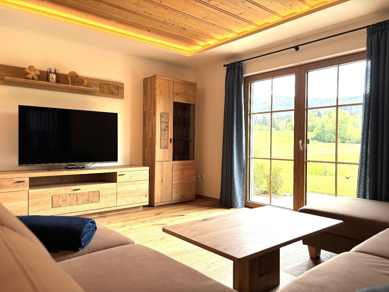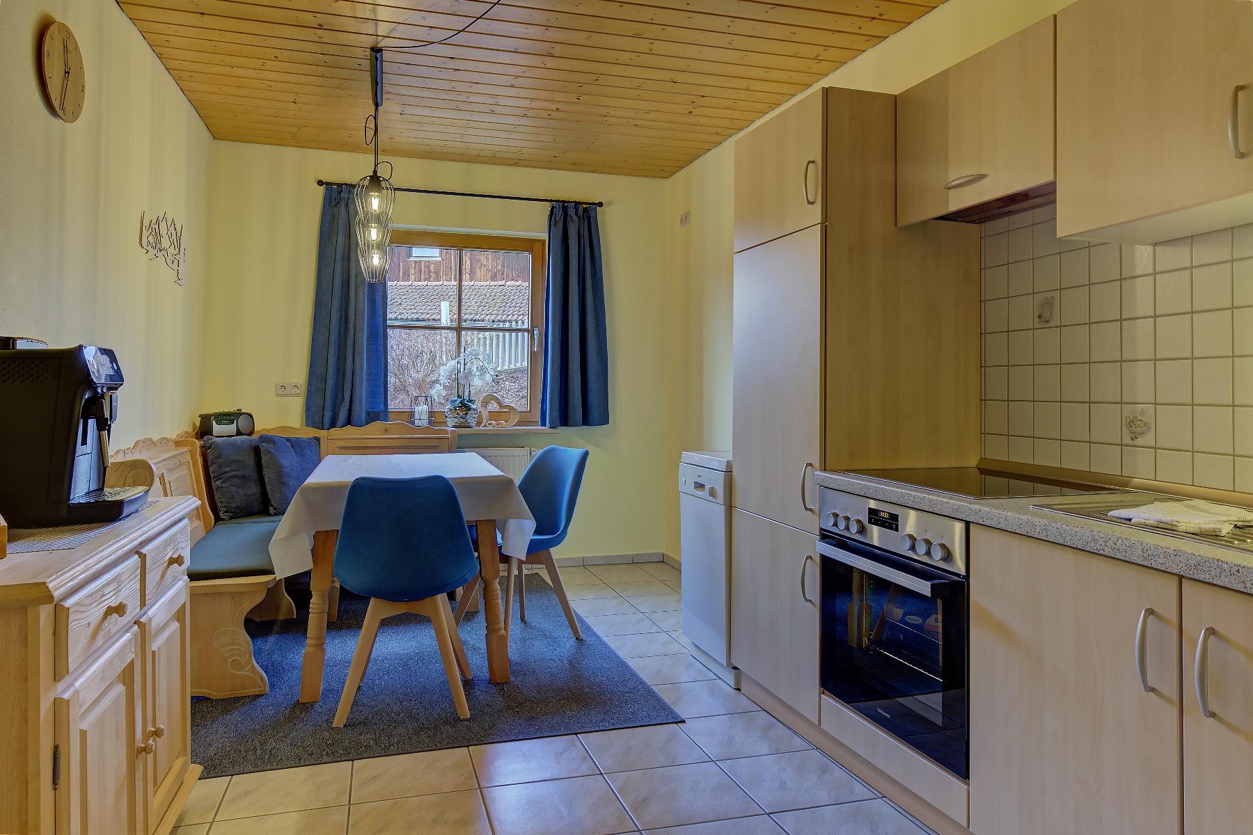 Unsere ebenerdige, sonnige Ferienwohnung bietet auf ca. 80 m² Platz für bis zu 5 Personen und ist ideal für Gäste, die ihren Urlaub gerne viel im Freien auf der Terrasse verbringen. Die große Südterrasse ist mit eigenen Gartenmöbeln wie Tisch, Bank, Sonnenschirm, Liegestühlen und Wäscheständer sowie einem Weber-Elektrogrill ausgestattet und bietet einen herrlichen Blick auf Wald und Wiesen. Die Wohnung verfügt über zwei Schlafzimmer mit Holzfußboden, darunter ein Schlafzimmer mit Doppelbett, Flachbild-SAT-TV und Safe sowie ein Schlafzimmer mit zwei Einzelbetten. Auf Wunsch stellen wir Ihnen gerne ein Zustellbett, ein Babyreisebett inklusive bezogenem Bettzeug, einen Hochstuhl oder einen Rausfallschutz zur Verfügung. Das große Badezimmer ist mit Dusche, WC, Waschbecken, Handtüchern und Föhn ausgestattet. Bettwäsche, Handtücher und Geschirrtücher sind inklusive. Das gemütliche Wohnzimmer mit Holzfußboden bietet eine kuschelige Eckcouch, Tisch und Wohnwand, Flachbild-SAT-TV, Radio sowie WLAN. Die separate Küche mit Eckbank und Holztisch verfügt über eine sehr gut ausgestattete Küchenzeile mit Geschirrspüler, Herd mit Cerankochfeld und Backofen, Kühlschrank mit Gefrierschrank, Wasserkocher, Toaster, Kaffeemaschine, Dolce-Gusto-Maschine und Kaffeevollautomat, ausreichend Geschirr sowie einer kleinen Kaffee- und Teeauswahl. Ein Parkplatz befindet sich direkt am Haus, außerdem stehen Abstellmöglichkeiten für Fahrräder und Ski zur Verfügung. Für einen entspannten Start in den Tag bieten wir liebevoll zusammengestellte Frühstückskörbe, Frühstück in unserer nahegelegenen Pension oder einen bequemen Semmel-Service an. Ihre Kinder finden viel Spaß in unserer Spielscheune mit Kinderspielparadies. Unser Wellnessbereich erhält derzeit ein neues Make-over; ab Juni erwarten Sie eine finnische Sauna, ein Jacuzzi für bis zu vier Personen sowie Schwebeliegen. Nach Eintrag in die Belegungsliste steht Ihnen der Wellnessbereich stundenweise exklusiv gegen eine kleine Gebühr zur Verfügung. Bitte beachten Sie, dass Onlinebuchungen Gebühren enthalten und in der Ferienwohnung Leithenwald Haustiere nicht erlaubt sind.