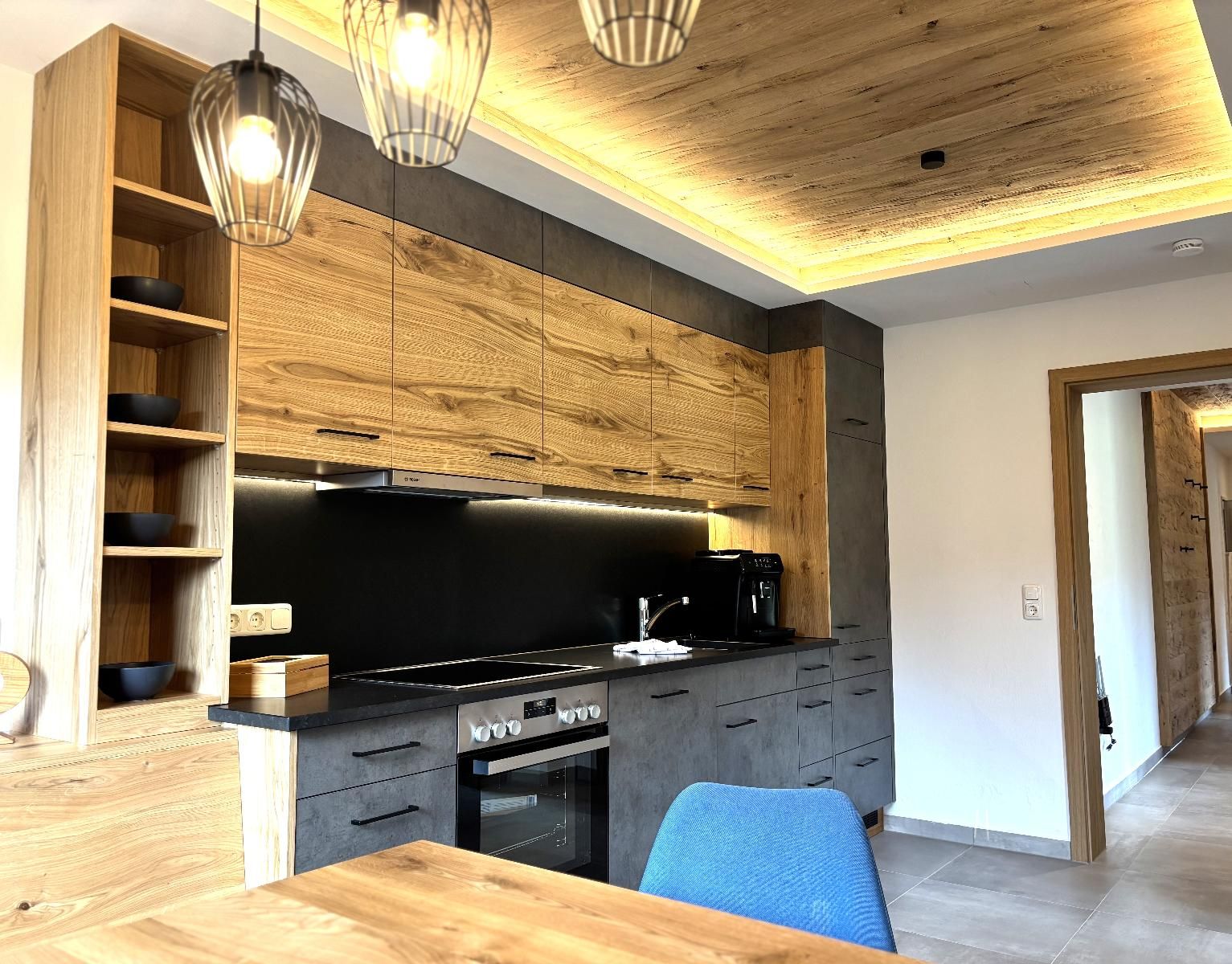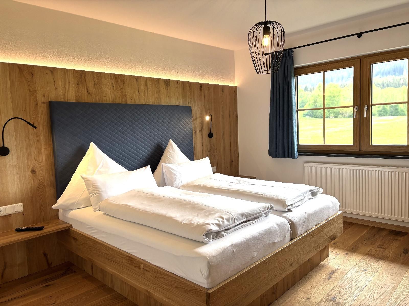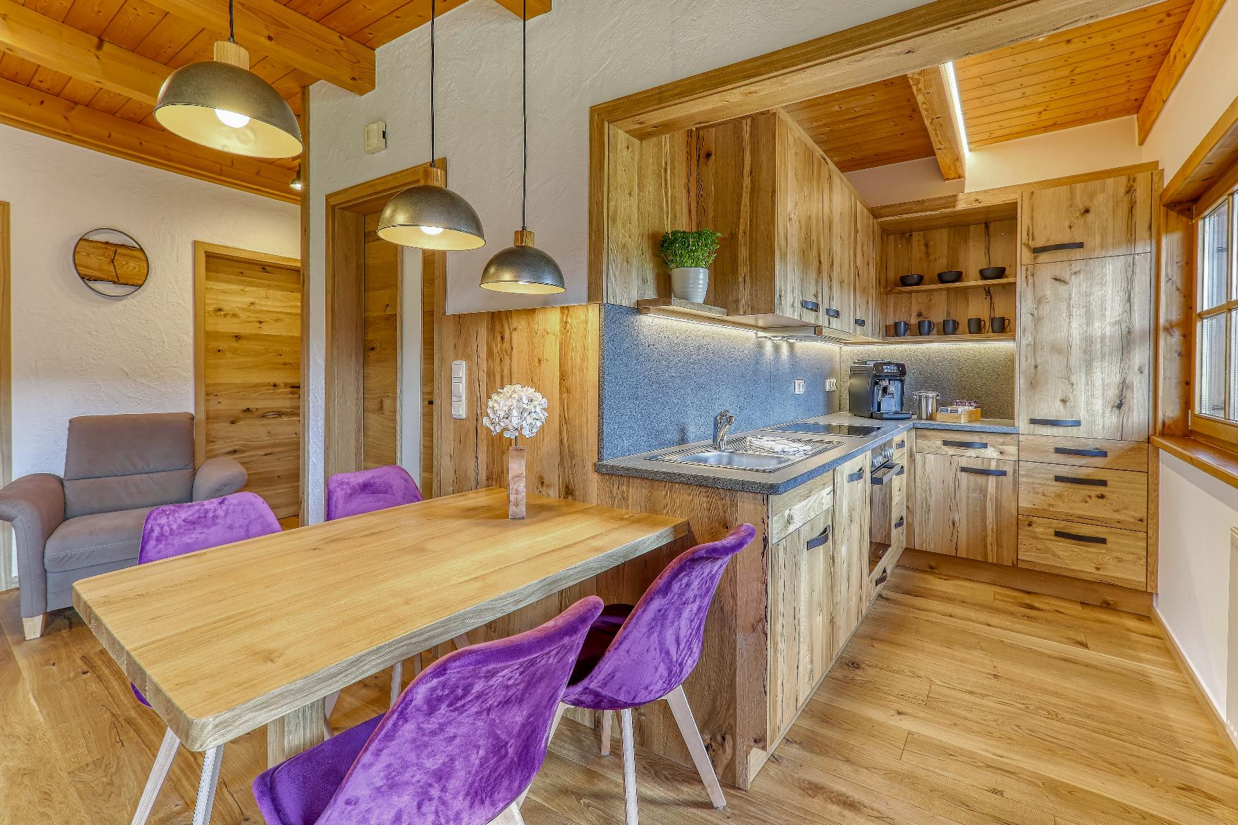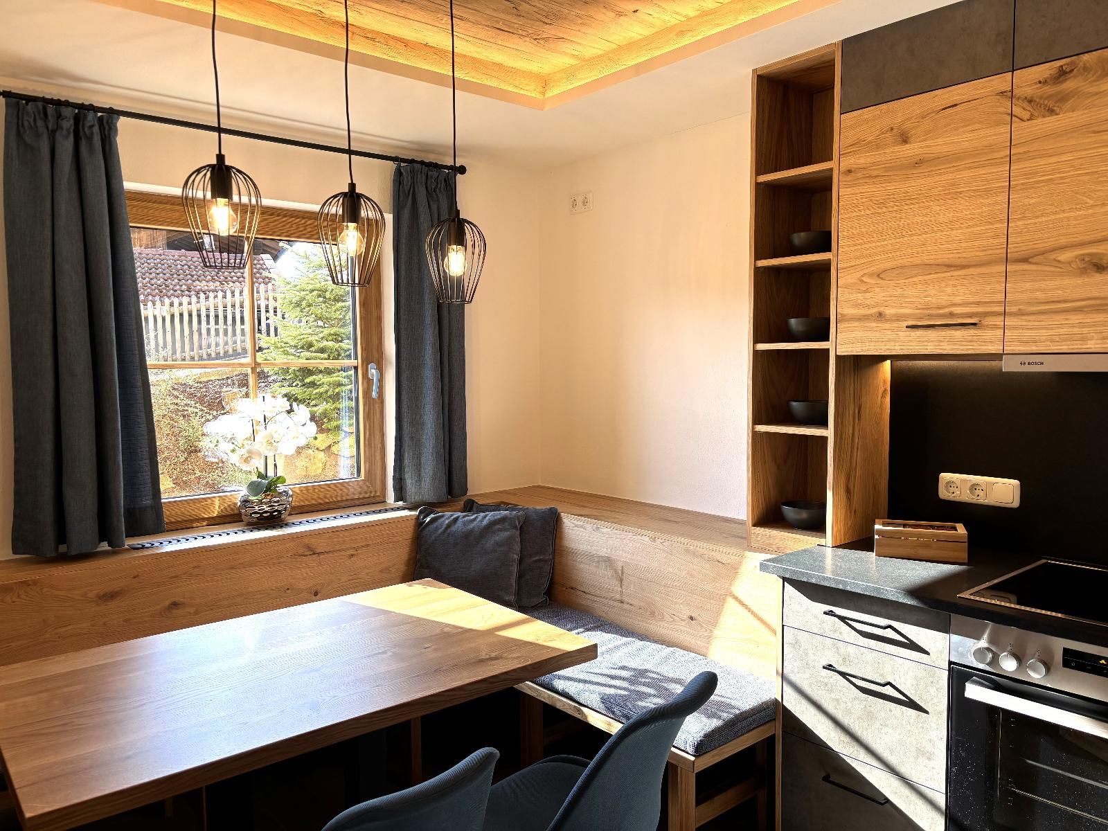 Unsere ebenerdige, sonnige Ferienwohnung bietet auf ca. 80 m² Platz für bis zu 5 Personen und ist ideal für Gäste, die ihren Urlaub gerne viel im Freien auf der Terrasse verbringen. Die große Südterrasse ist mit eigenen Gartenmöbeln wie Tisch, Bank, Sonnenschirm, Liegestühlen und Wäscheständer sowie einem Weber-Elektrogrill ausgestattet und bietet einen herrlichen Blick auf Wald und Wiesen. Die Wohnung verfügt über zwei Schlafzimmer mit Holzfußboden, darunter ein Schlafzimmer mit Doppelbett, Flachbild-SAT-TV und Safe sowie ein Schlafzimmer mit zwei Einzelbetten. Auf Wunsch stellen wir Ihnen gerne ein Zustellbett, ein Babyreisebett inklusive bezogenem Bettzeug, einen Hochstuhl oder einen Rausfallschutz zur Verfügung. Das große Badezimmer ist mit Dusche, WC, Waschbecken, Handtüchern und Föhn ausgestattet. Bettwäsche, Handtücher und Geschirrtücher sind inklusive. Das gemütliche Wohnzimmer mit Holzfußboden bietet eine kuschelige Eckcouch, Tisch und Wohnwand, Flachbild-SAT-TV, Radio sowie WLAN. Die separate Küche mit Eckbank und Holztisch verfügt über eine sehr gut ausgestattete Küchenzeile mit Geschirrspüler, Herd mit Cerankochfeld und Backofen, Kühlschrank mit Gefrierschrank, Wasserkocher, Toaster, Kaffeemaschine, Dolce-Gusto-Maschine und Kaffeevollautomat, ausreichend Geschirr sowie einer kleinen Kaffee- und Teeauswahl. Ein Parkplatz befindet sich direkt am Haus, außerdem stehen Abstellmöglichkeiten für Fahrräder und Ski zur Verfügung. Für einen entspannten Start in den Tag bieten wir liebevoll zusammengestellte Frühstückskörbe, Frühstück in unserer nahegelegenen Pension oder einen bequemen Semmel-Service an. Ihre Kinder finden viel Spaß in unserer Spielscheune mit Kinderspielparadies. Unser Wellnessbereich erhält derzeit ein neues Make-over; ab Juni erwarten Sie eine finnische Sauna, ein Jacuzzi für bis zu vier Personen sowie Schwebeliegen. Nach Eintrag in die Belegungsliste steht Ihnen der Wellnessbereich stundenweise exklusiv gegen eine kleine Gebühr zur Verfügung. Bitte beachten Sie, dass Onlinebuchungen Gebühren enthalten und in der Ferienwohnung Leithenwald Haustiere nicht erlaubt sind.