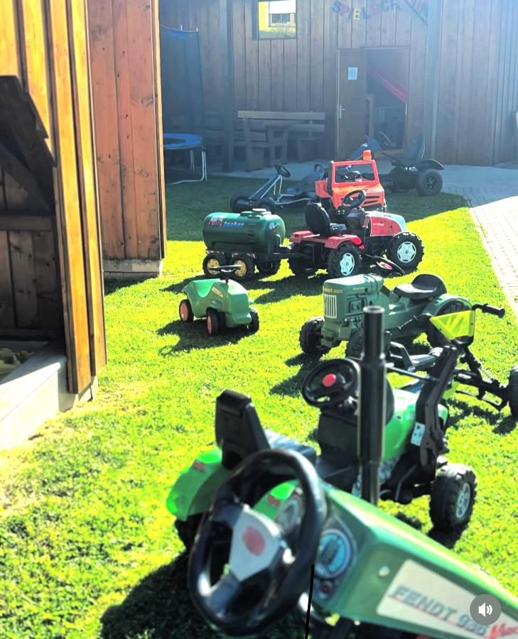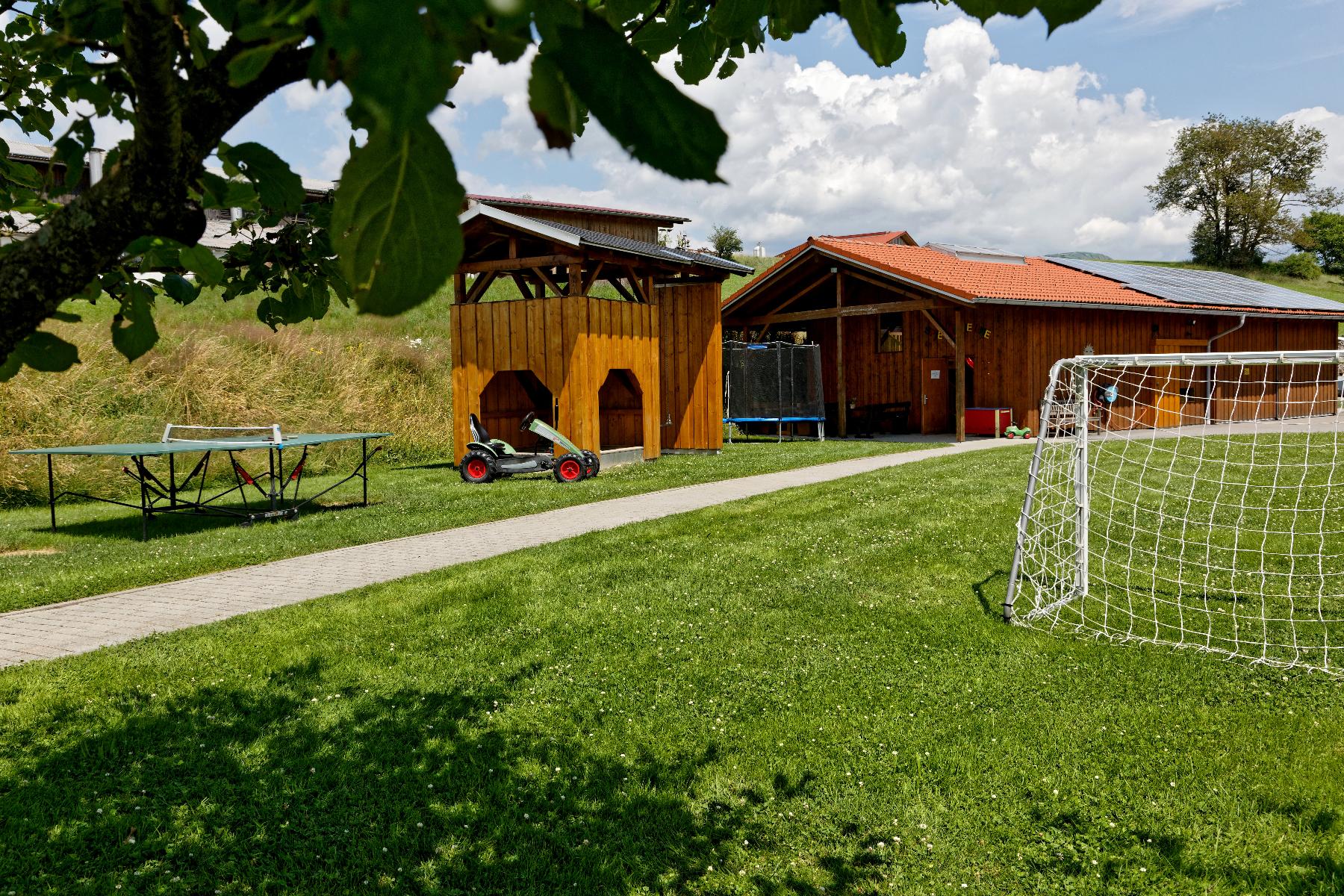 Getreu unserem Motto können Eltern bei uns den Alltag hinter sich lassen, während Ihre Kinder auf dem Spielplatz mit Tischtennis, Fußballtor und Kleinkinderspielplatz toben, in der Spielscheune Spaß haben oder mit Kettcar und Co. das Feriendomicil erkunden.