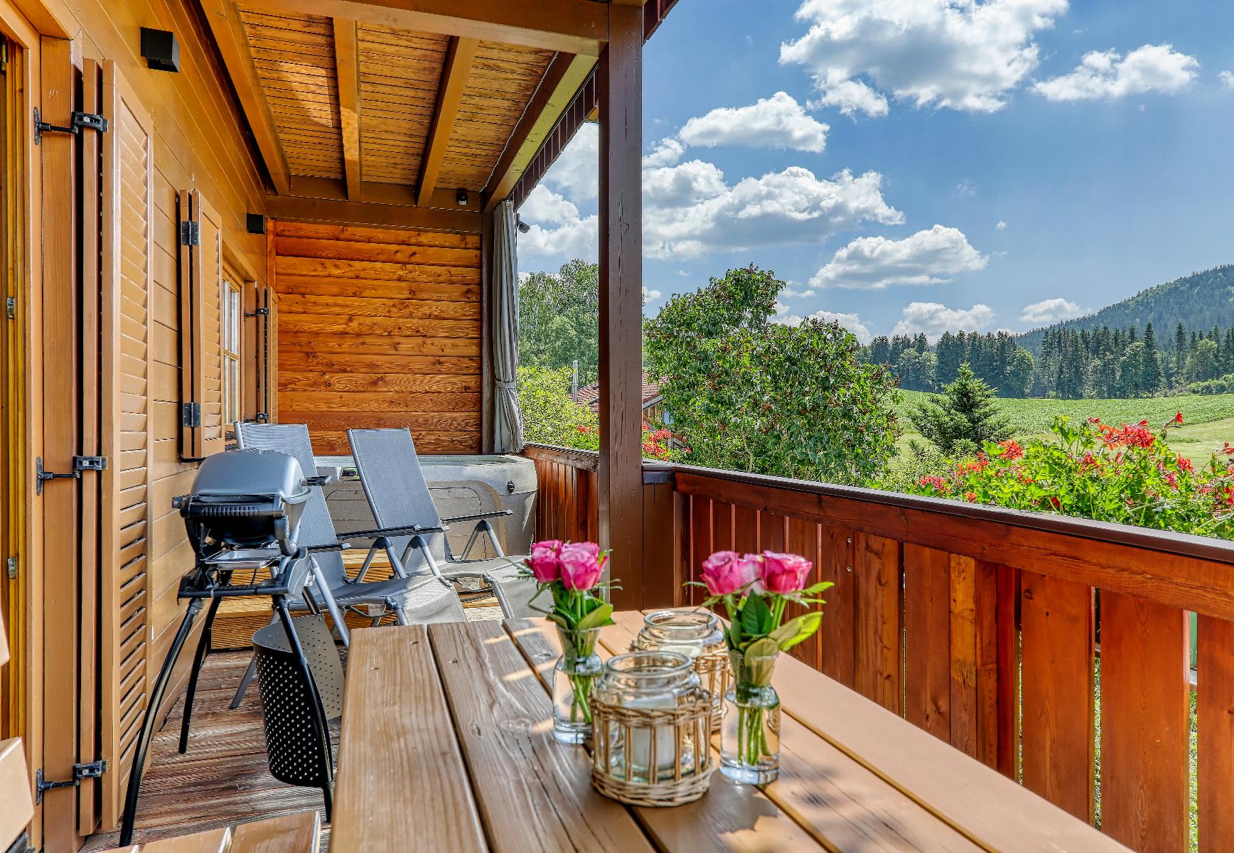 Wieder zu Hause lässt es sich auf dem Balkon oder der Terrasse herrlich entspannen. Oder den Tag nach dem Grillen mit einem kühlen Getränk und herrlichen Blick auf die Berge ausklingen lassen. Etwas Zeit für sich haben. Unser Erholungsraum mit Infrarotwärmekabine und Whirlpoolbadewanne mit genügend Platz für zwei Personen bietet Ihnen Raum für Ruhe und Entspannung.