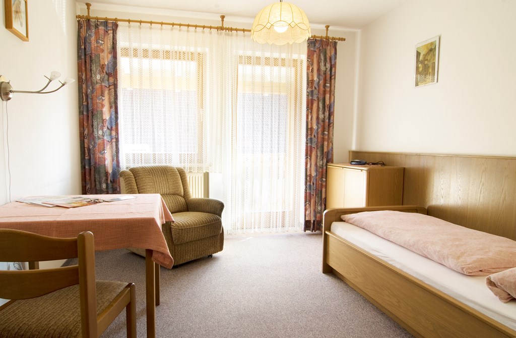 Geräumige Zimmer – alle mit Dusche/WC und Liegestuhl auf dem Balkon, z.T. mit wunderbarem Blick ins Grüne versprechen Ihnen einen erholsamen Urlaub in familiärer Atmosphäre. Das von unseren vielen Stammgästen oft gelobte Frühstück, Gästekühlschrank und Getränkeverkauf runden das Angebot ab. Zusätzlich bieten wir Ihnen Leihräder, Radlgarage, Parkplätze, Leseraum, Liegewiese, Solarium, Biosauna und vieles mehr. In unserem Wellness-Stüberl können Sie sich mit Massagen und Rotlichtbestrahlung, Schmerzbehandlungen mit Diagnose und Beratung, wie Sie dauerhaft schmerzfrei werden und bleiben oder medizinischer Fußpflege (auch für Diabetiker) richtig verwöhnen lassen. Individuelle Pauschalen, Ermäßigungen und Nebensaisonpreise auf Anfrage!