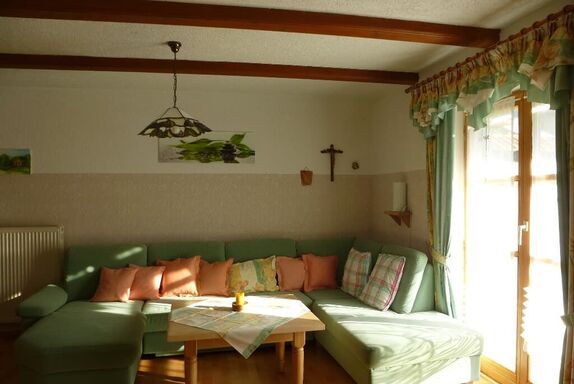 Die Ferienwohnung Wiesengrund liegt ebenerdig und hat eine große Terrasse mit Liegewiese und Gartenmöbel. Sie können hier über eine großzügige und komfortable Wohnküche(neue Küche) mit Geschirrspüler, Kühlschrank Ceranfeld, Backofen und div. elektr. Kleingeräte, sowie eine große Eckcouch und Eckbankgruppe verfügen. Ausserdem hat Sie ein Doppelzimmer und ein 2Bettzimmer, ein Bad mit Dusche und WC. Die Wohnung ist mit Parkett ausgelegt.