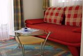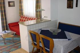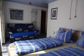 Gemütliche Ferienwohnung (35qm) mit Wohnzimmer, Wohnküche, ein Schlafzimmer mit Doppelbett und kl. Couch ausziebar, Dusche/WC, große Terrasse mit Gartenmöbel.