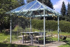 Schwimmteich, Gartenpavillon zum Zusammenkommen und Grillen,