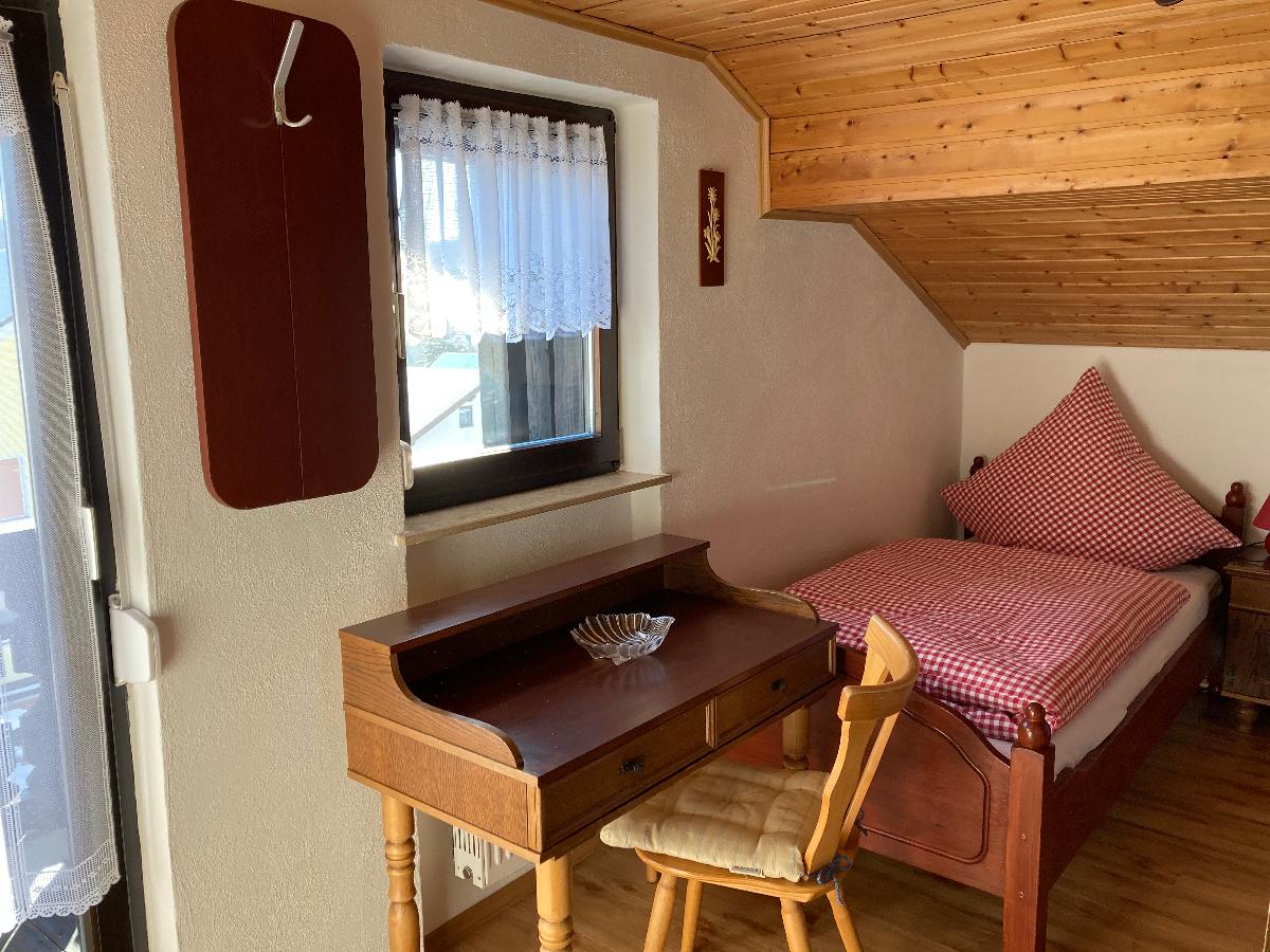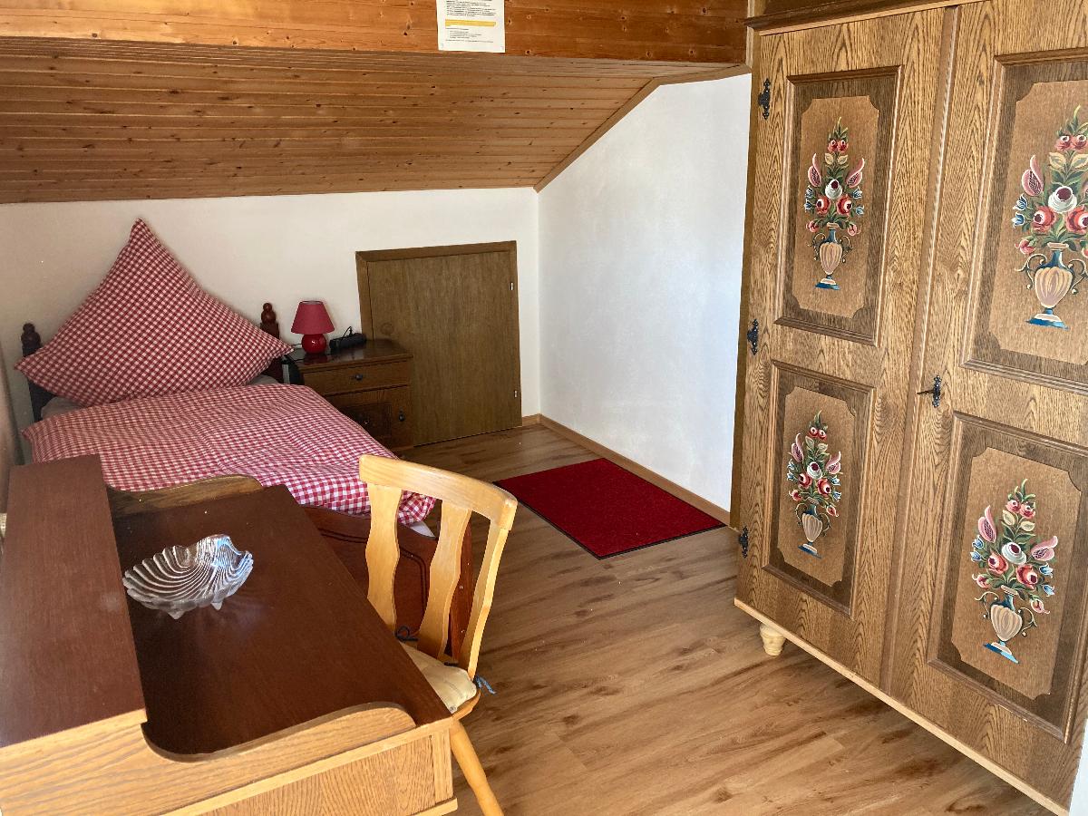 Gästezimmern. Im schönen Einzelzimmer steht ein bequemes Einzelbett, ein