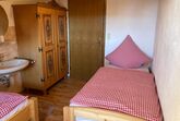 Doppelbett. Im zweiten Schlafzimmer stehen zwei Einzelbetten. Der Wohnraum mit