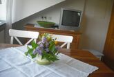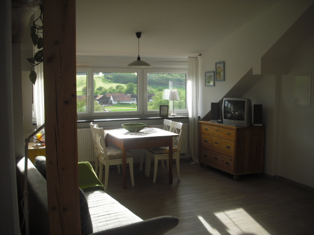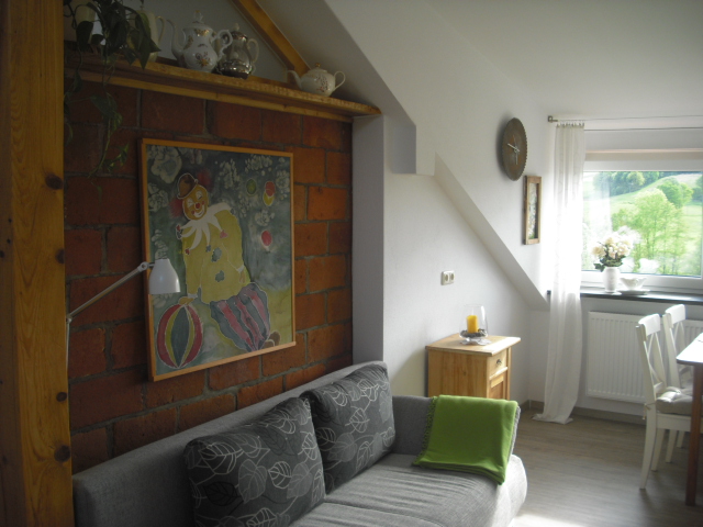 Das große Panoramafenster vom App. III mit tollem Blick kann locker einen Balkon ersetzen. Außerdem hat die Ferienwohnung zwei getrennte Schlafzimmer. Überall finden sie kleine, teils selbstgemachte Möbelstücke oder Dekorationen. Die große Einbauküche läßt auch keinen Kochwunsch offen.