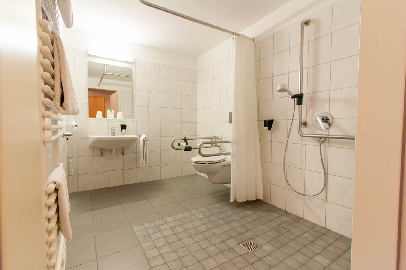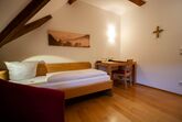 Die barrierefreien Zweibettzimmer passen sich mit ihrer schlichten, aber soliden Ausstattung (Bett 90x200, Schrank, Schreibtisch) an die klösterliche Umgebung an. Auf persönlichen Komfort (Dusche, Toilette, Haartrockner, Handtuchheizkörper) und moderne Technik (WiFi, Direktwahltelefon) müssen Sie dennoch nicht verzichten.