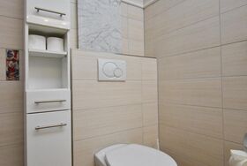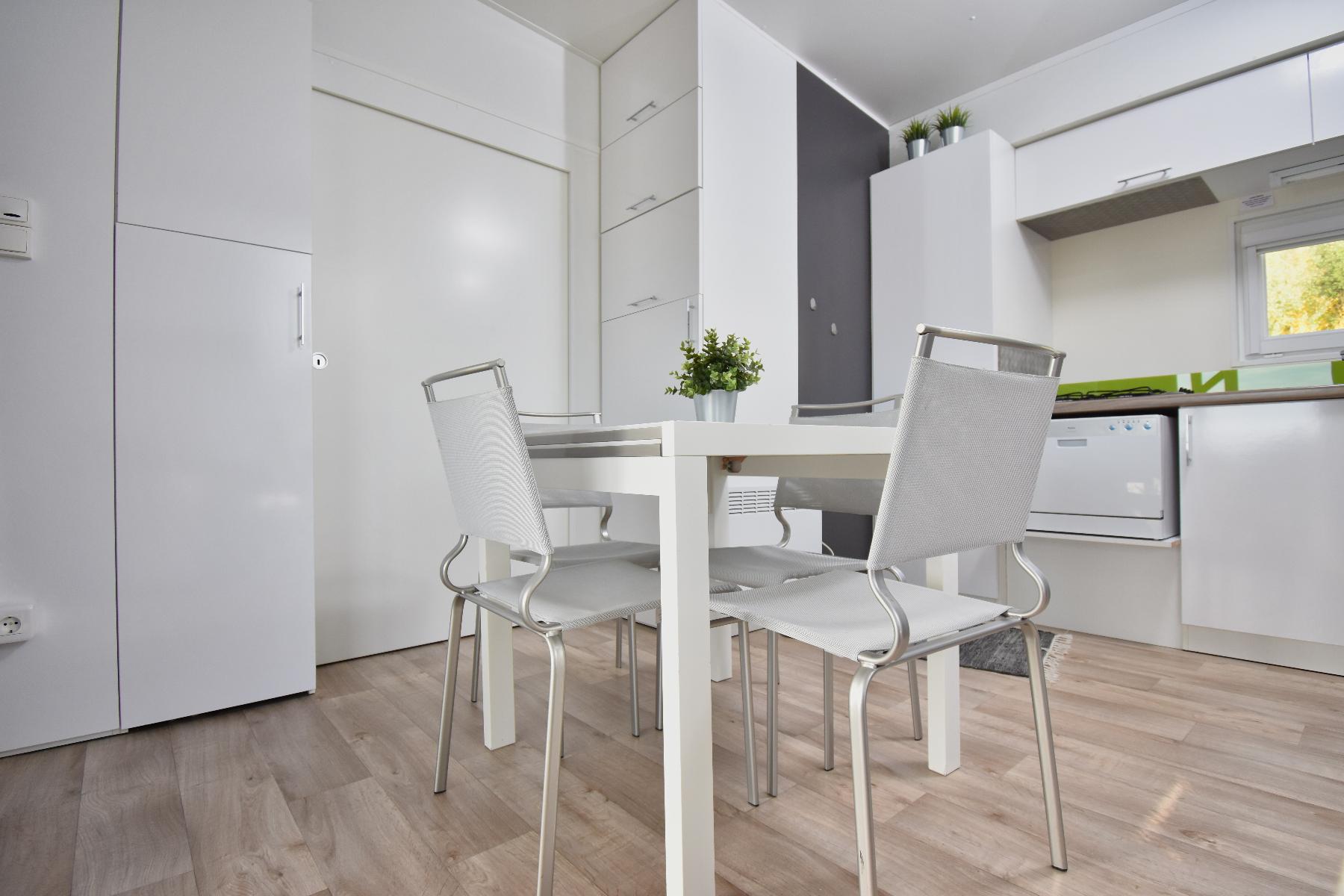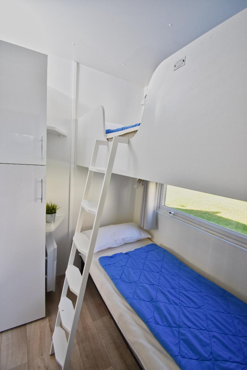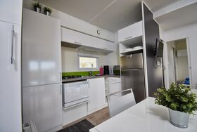 Das behagliche, modern eingerichtete Mobilheim TAOS ist 40qm groß und bietet Platz für 6 Personen. Im Schlafzimmer 1 befindet sich ein Doppelbett, im zweiten Schlafzimmer zwei Einzelbetten und in Schlafzimmer 3 zwei Etagenbetten. Die zwei Bäder beinhalten jeweils Dusche und WC. Im Wohnzimmer befindet sich eine Essecke und ein Fernseher. Küchenzeile mit Mikrowelle, Kaffeemaschine, Kühlschrank, Herd, Geschirr und Essecke lässt keine Wünsche offen. Auf der schönen Terrasse können Sie die Sonne genießen. Parkplatz auf dem Grundstück und WLAN vorhanden. KEINE HUNDE ERLAUBT!