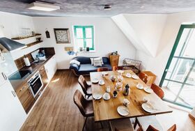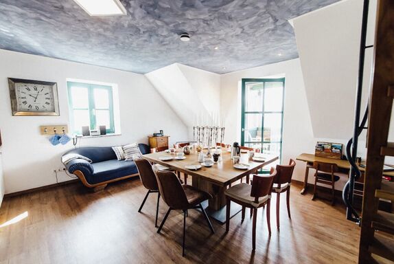 Das WLAN und den Parkplatz vor dem Haus können Sie kostenfrei nutzen. Die Wohnung befindet sich im 2. Obergeschoß. Sie ist hochwertig eingerichtet mit heimischen Hölzern und auf das alte Mühlenanwesen abgestimmt. Die teilweise moderne Einrichtung harmonisiert mit dem Charm des alten Bauernhauses.