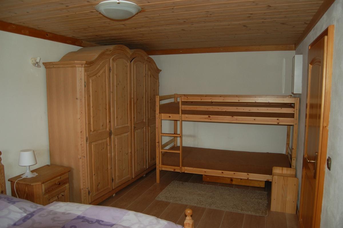 Garten aus: Schlafzimmer mit 4 Betten, Wohnzimmer mit Couch, SAT-TV