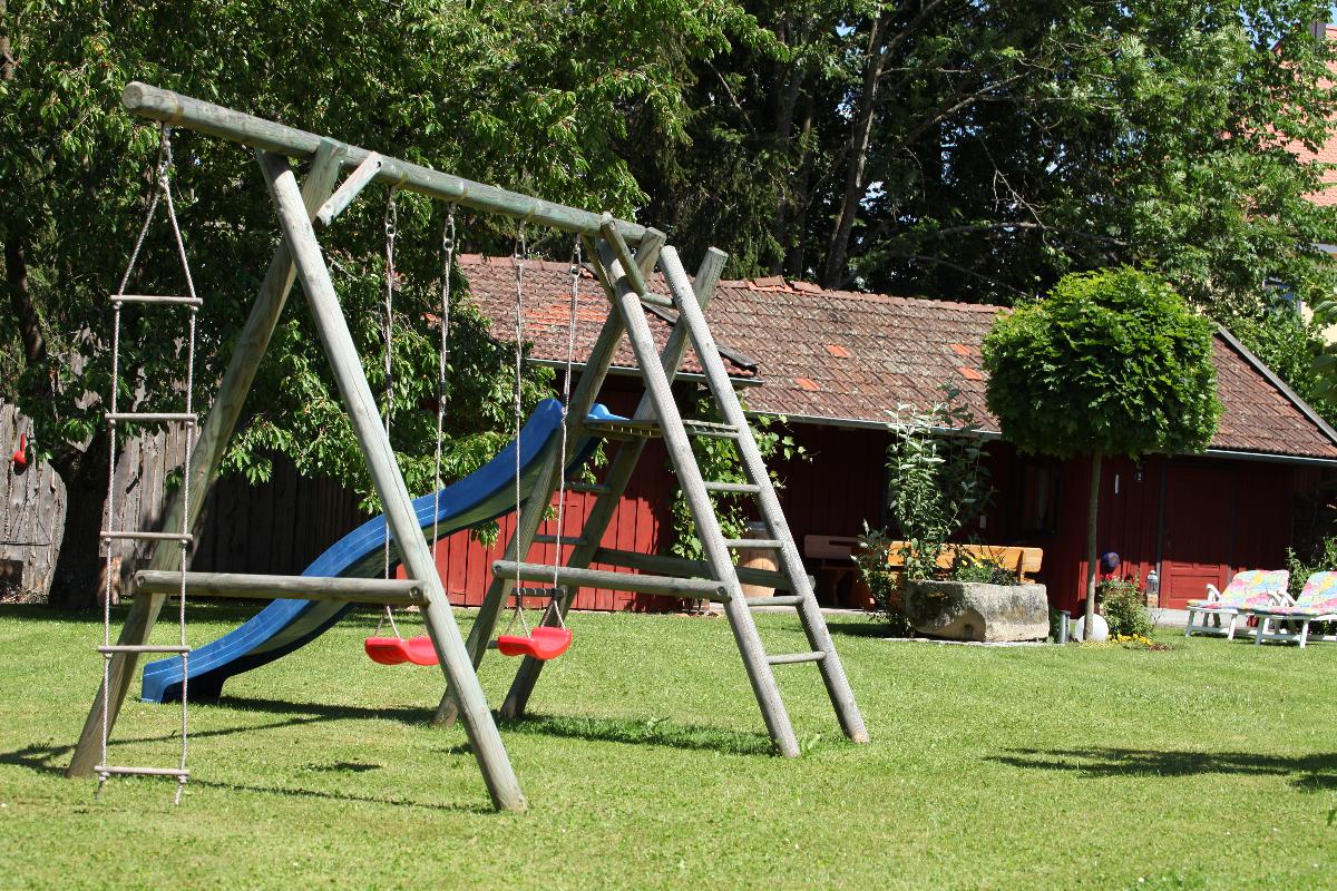 Im Garten befindet sich eine große Liegewiese sowie ein Gartenhaus für gemütliche Grillabende.