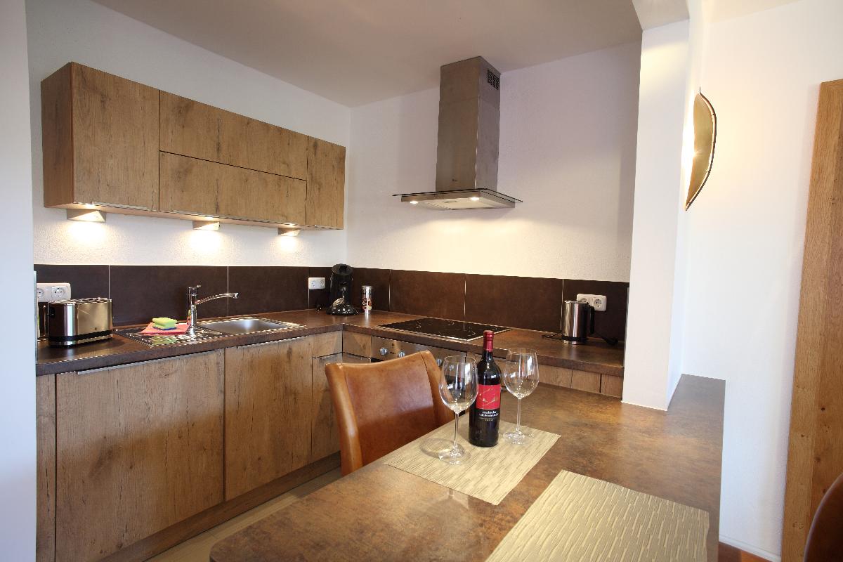 Unser neu gestaltetes Appartement - Nostalgie bietet Ihnen eine moderne Küche, ausgestattet mit Kühlschrank samt Gefrierfach, einem funktionellen E-Herd mit Cerankochfeld, einer Edelstahl-Dunstesse und einer angesetzten, raumteilenden Esstheke.Die hochwertige Qualität und das ansprechende Design der Küche setzen sich auch im Wohnbereich, Schlafraum mit Ankleide und dem Bad fort. Handgefertigte, filigrane Echtholzmöbel, ein Relaxsessel aus feinstem Leder, ein kuscheliges Sofa (ist umfunktionierbar zum Zusatzbett ) sowie Betten die höchsten Schlafkomfort bieten, ergänzen sich zu einem luxuriösen und behaglichen Ambiente. Designleuchten und liebevolle Deko runden das Gesamtbild ab und verleihen dem Appartement - Nostalgie seinen ganz besonderen Charme. Lassen Sie sich verzaubern ...
