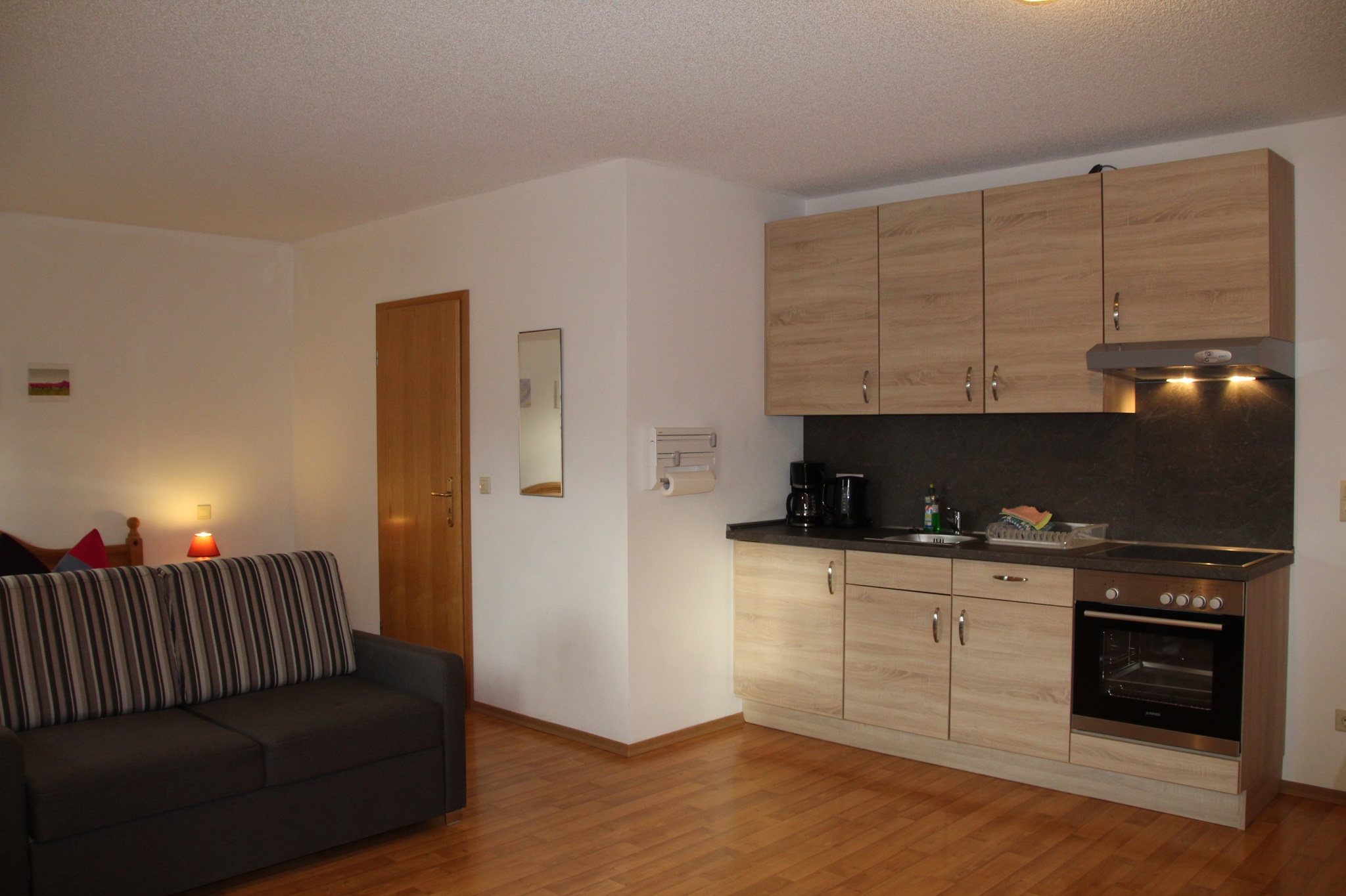 Unsere moderne Ein-Raum-Ferienwohnung, im Herzen des Naturpark Altmühltals, in sonniger und ruhiger Lage. Sie erreichen uns über einen ebenerdigem Eingang. Die Ferienwohnung bietet mit 30m² Wohnfläche Platz für 1-3 Personen. Die Ferienwohnung verfügt über ein Doppelbett, sowie ein bequemes Schlafsofa, für einen entspannten und erholsamen Schlaf. Außerdem ist ein Fernseher mit internationalem SAT-Programm vorhanden, der zum Verweilen einlädt. Die komplett ausgestattete Küche mit Kühlschrank, inkl. Gefrierfach, Herd, Backofen, Toaster, Wasserkocher, sowie Kaffeemaschine lässt keine Wünsche offen. Eine Sitzgelegenheit mit Tisch und Stühlen finden Sie ebenfalls vor, sowie einen Schrank für ausreichend Stauraum. Das Badezimmer ist ausgestattet mit Dusche, WC und Föhn. Vor allem im Sommer können Sie auf unserer Terrasse gemütliche Stunden verbringen. Gartenstühle und ein Gartentisch stehen Ihnen hierfür ebenfalls zur Verfügung. Das WLAN und den Parkplatz vor dem Haus können sie kostenfrei nutzen. Es sind keine Haustiere erlaubt.