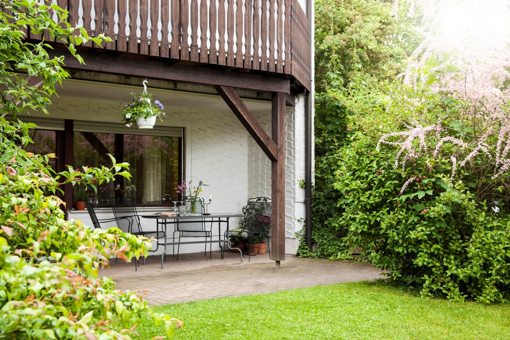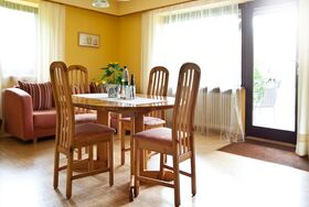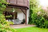 Unser Haus mit Garten liegt in ruhiger Ortsrandlage, jedoch nur 500 m von den Einkaufsmöglichkeiten entfernt.