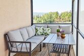 Das separate Schlafzimmer ist mit einem Fernseher und einem Dopplebett ausgestattet. Die Betten sind bei Anreise für Sie bezogen. Der gemütliche Wohnbereich verfügt über eine ausziehbare Schlafcouch für eine dritte Person.