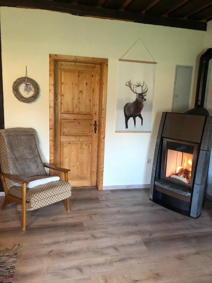 Das urige Ferienhaus liegt idyllisch an einer Bergwiese am Waldrand und ermöglicht Erholung pur direkt in der Natur. Zwei Betten im Schlafzimmer und eine Schlafcouch im Wohnzimmer bieten Platz für maximal drei Personen. Das Wohnzimmer verfügt über eine gemütliche Eckcouch und natürlich einen Fernseher. Das absolute Highlight ist unser Kaminofen, der mit seinem prasselnden Feuer für eine heimelige Atmosphäre sorgt. Eine gut ausgestattete Küche mit Backofen, Kaffeemaschine, Toaster, Wasserkocher usw. macht den Urlaub angenehm. Die Feuerschale im Außenbereich lässt Lagerfeuerromantik aufkommen. Auf der Terrasse oder auf der Liegewiese genießen Sie die wunderbare Natur und herrliche Ruhe. Wenn Sie Glück haben, können Sie abends sogar Rehe beim Äsen beobachten.