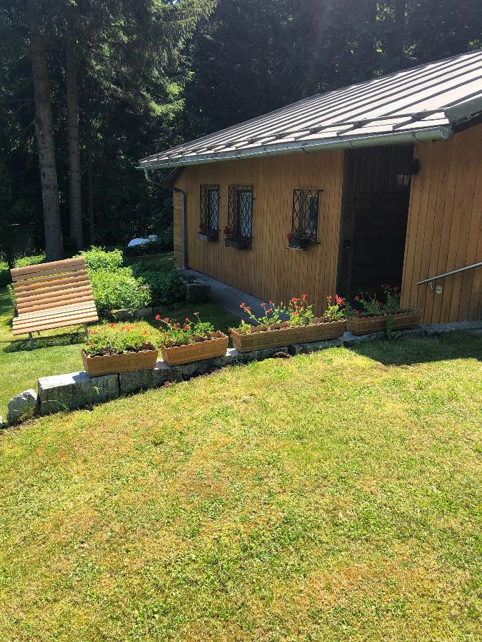 Erholung pur mitten in der Natur: Das urige Ferienhaus liegt idyllisch an einer Bergwiese, direkt am Waldrand. Zwei Betten im Schlafzimmer und eine Schlafcouch im Wohnzimmer bieten Platz für maximal vier Personen. Das Wohnzimmer verfügt über eine gemütliche Eckcouch und natürlich einen Fernseher. Das absolute Highlight ist unser Kaminofen, der mit seinem prasselnden Feuer für eine heimelige Atmosphäre sorgt. Eine gut ausgestattete Küche mit Backofen, Kaffeemaschine, Toaster, Wasserkocher usw. macht den Urlaub angenehm. Die Feuerschale im Außenbereich lässt Lagerfeuerromantik aufkommen. Auf der Terrasse oder auf der Liegewiese genießen Sie die wunderbare Natur und herrliche Ruhe. Wenn Sie Glück haben, können Sie abends sogar Rehe beim Äsen beobachten.