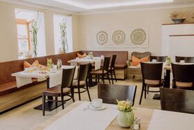 Zweibettzimmer laden zum Verweilen ein. Im großzügigen Frühstücksraum mit