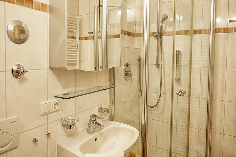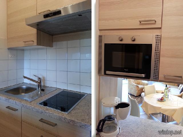 Filter-Kaffeemaschine und Besteck und Geschirr für 4 Personen. Das Badezimmer ist mit Dusche oder Wannenbad, Waschbecken und WC ausgestattet. Darüber hinaus verfügt das Appartement über eine große Loggia. SAT-TV, Durchwahltelefon, W-LAN, kostenlose Parkplätze, Lift und mehr sind selbstverständlich.