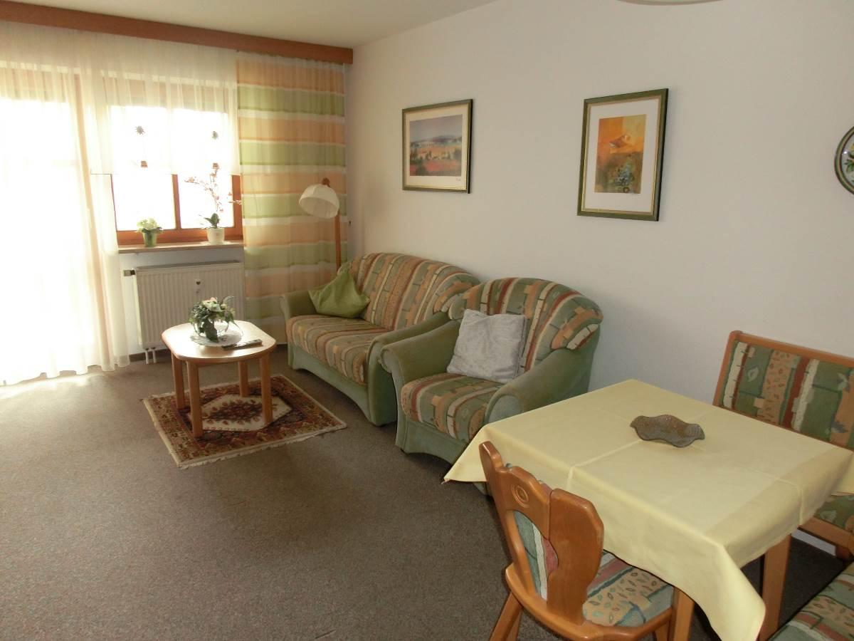 Wohnraum mit Couchgruppe u. Eßecke. Alle App. haben Du/WC,