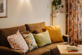 Im Wohnraum befindet sich eine ausziehbare Schlafcouch auf der 1-2 Kinder bequem übernachten können.