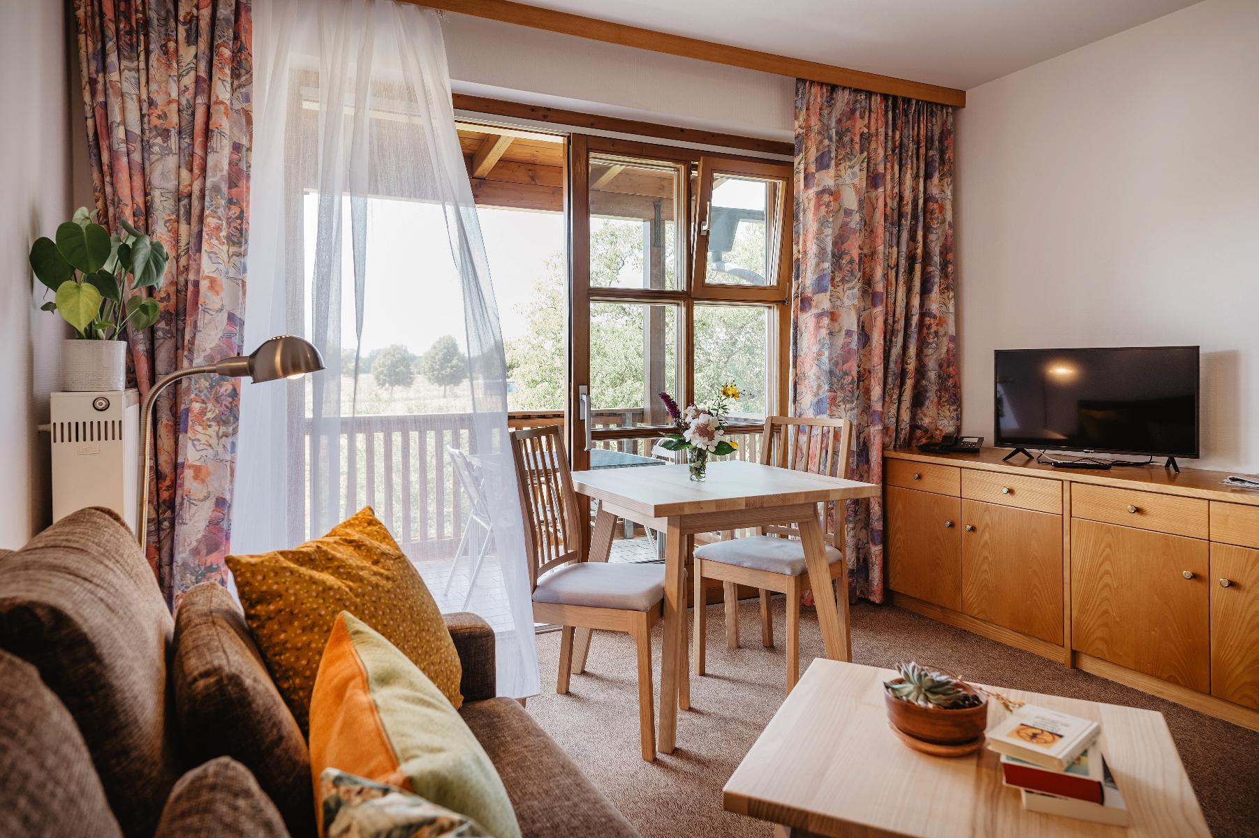 Diese Appartements befinden sich zum einen auf der Südseite unseres Hauses und auf der Gartenseite mit Blick ins Grüne.