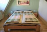 Die Ferienwohnungen 1 - mit ca. 50 qm - und 2 - mit 45 qm - sowie ein Doppelzimmer mit 21,5 qm finden Sie im 1. Obergeschoss, ein Einzelzimmer mit 13,5qm im Erdgeschoss. Alle Räume sind mit pflegeleichten Böden - keine Teppichböden - ausgestattet und werden regelmäßig renoviert. Unsere Gästebetten sind mit guten Matratzen bestückt und werden von uns bezogen. Auch Hand- und Badehandtücher werden grundsätzlich gestellt. Für Allergiker führen wir entsprechende Betten.