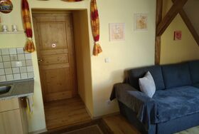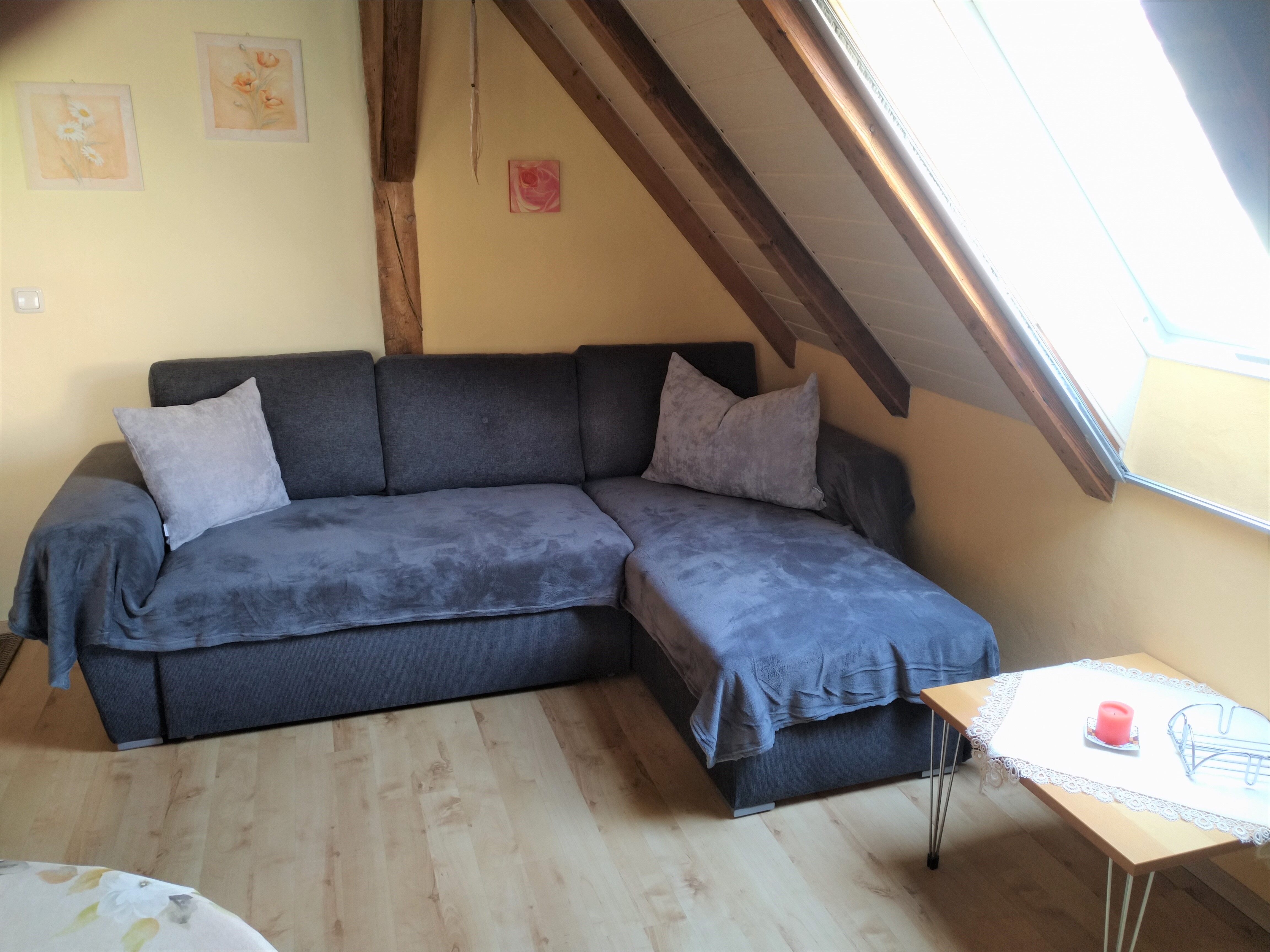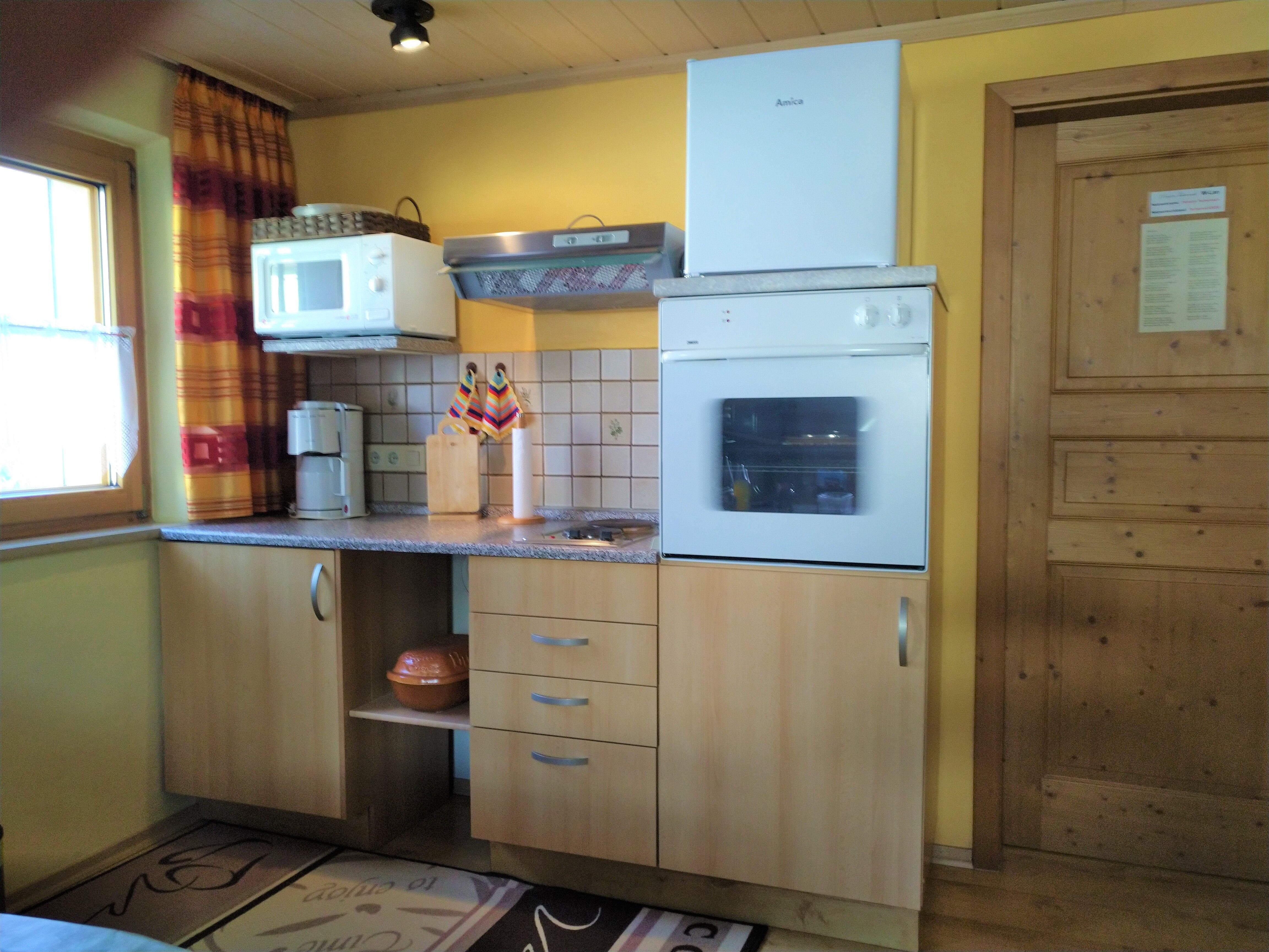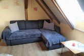 Die Fewo besteht aus Wohnraum mit Küchenzeile, Schlafzimmer und Bad. Im Wohnraum befindet sich eine Doppelschlafcouch, ein Eßtisch mit 5 bequemen Stühlen sowie das Sat-TV-Gerät und Radio. Die Küchenzeile beinhaltet einen Kühlschrank, kleinen Gefrierschrank, 2Plattenkocher, Dunstabzugshaube, Backofen, Mikrowelle, Kaffeemaschine, Wasserkocher und Spülmaschine.