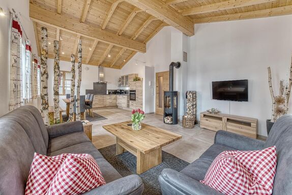 In unseren Chalets in der Urlaubsregion Bayerischer Wald können wir je 5 Personen gleichzeitig r großzügige Wohn- und Essbereich mit Kaminofen und Flachbild-TV verspricht entspannte Abende in gemütlicher Runde. Für einen gelungenen Start in den Tag wird Ihnen auf Wunsch und gegen Aufpreis und jeden Morgen ein Frühstückskorb mit Spezialitäten aus der Region gebracht.